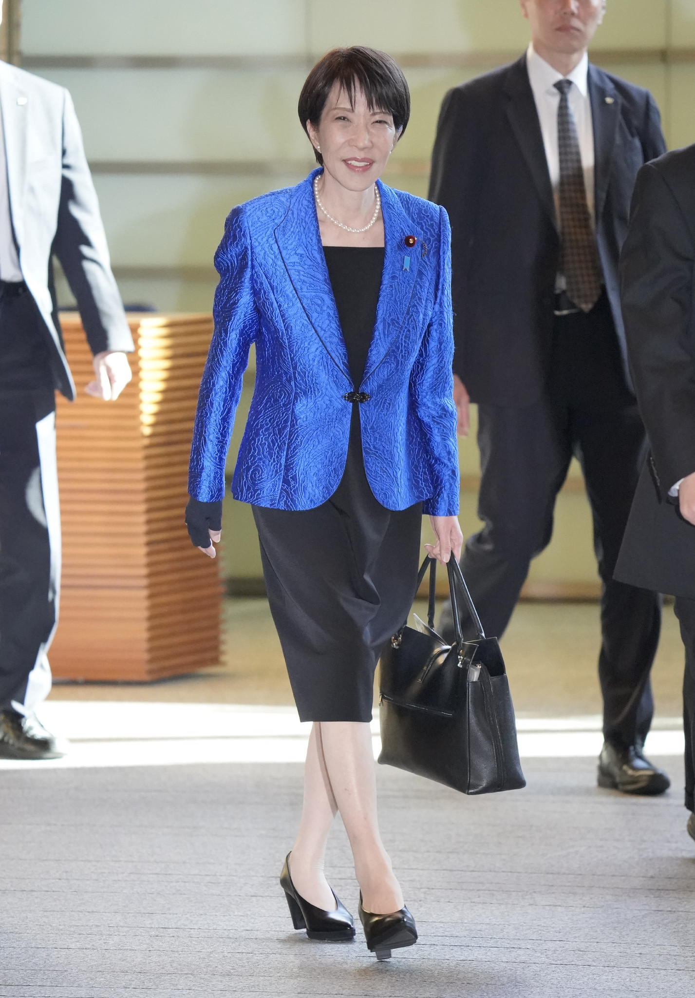 首相官邸に入る高市早苗首相=19日午前、東京・永田町