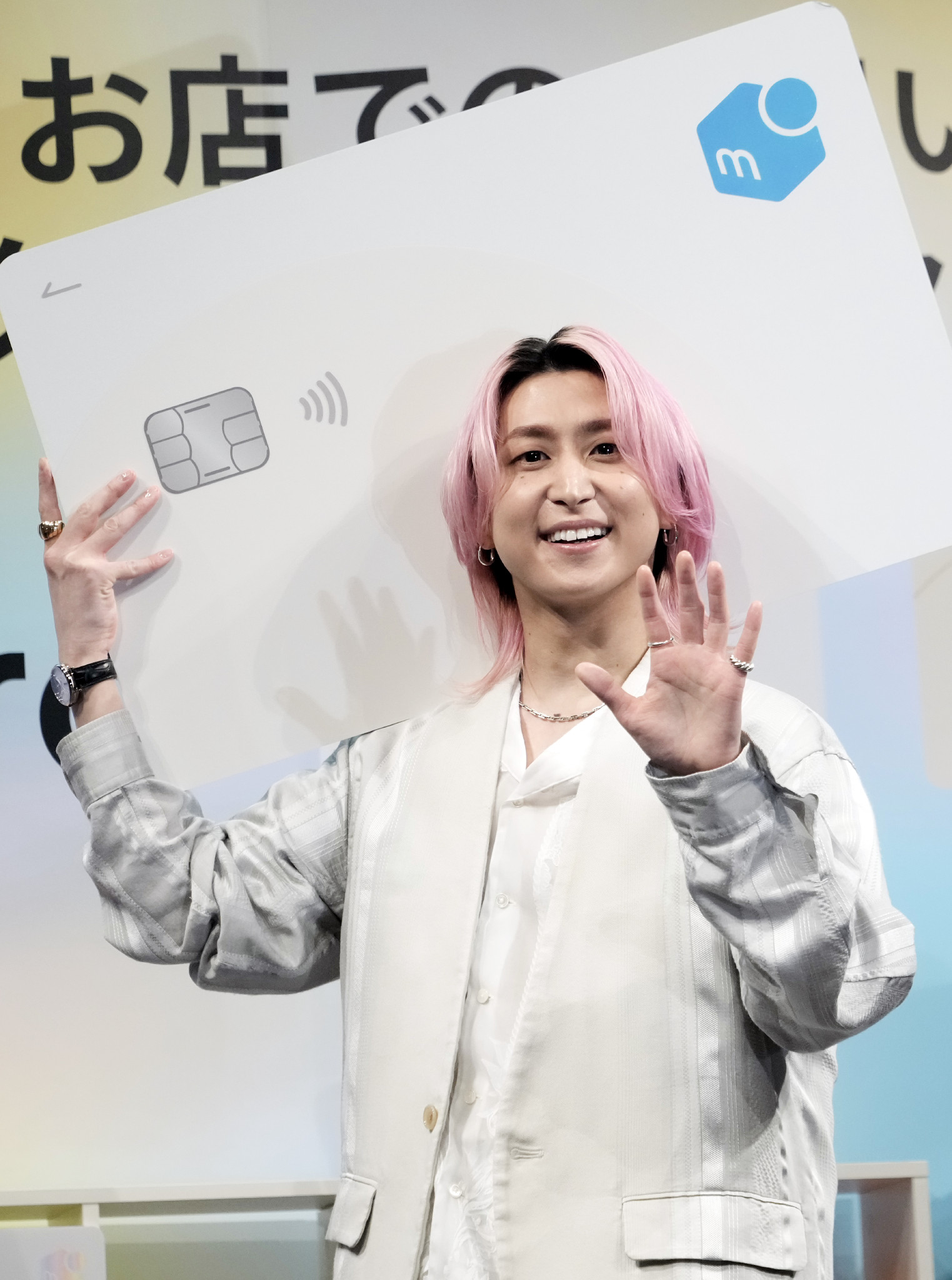 アイドルグループSnowManの佐久間大介さんがクレジットカード「メルカード」の新CM発表会に登壇。フリマアプリで不要になったグッズを売却して次の購入資金に充てられる「循環型の推し活」をPR=19日【時事通信フォト】