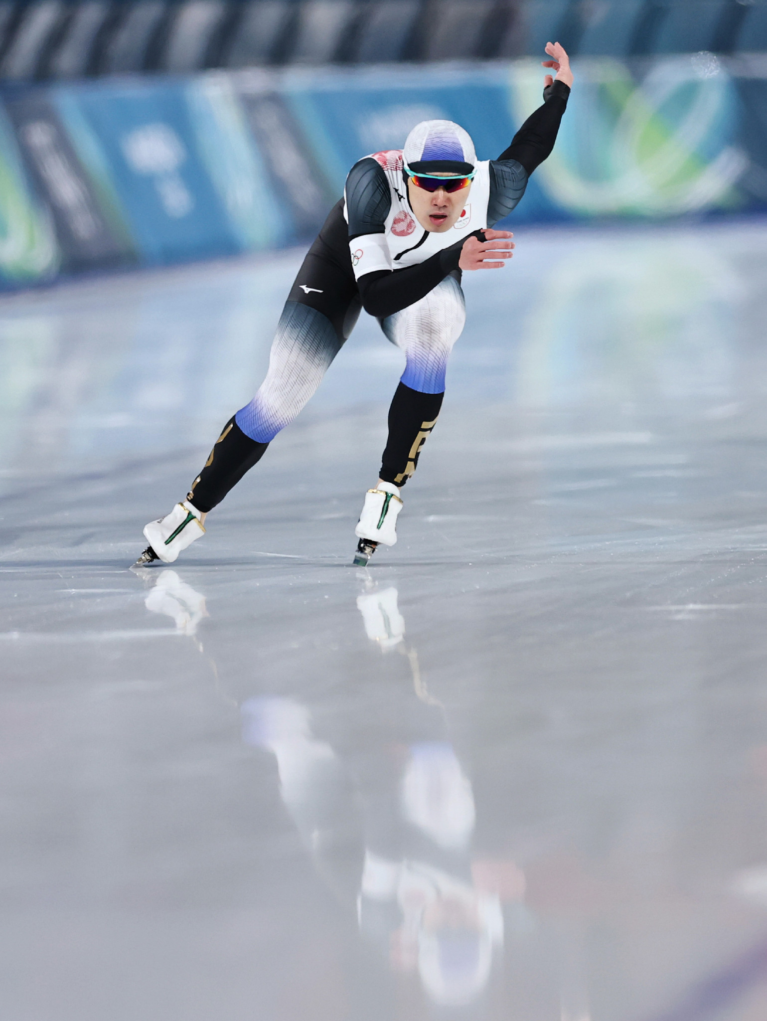 スピードスケート男子1500メートルで滑走する蟻戸一永=19日、ミラノ郊外
