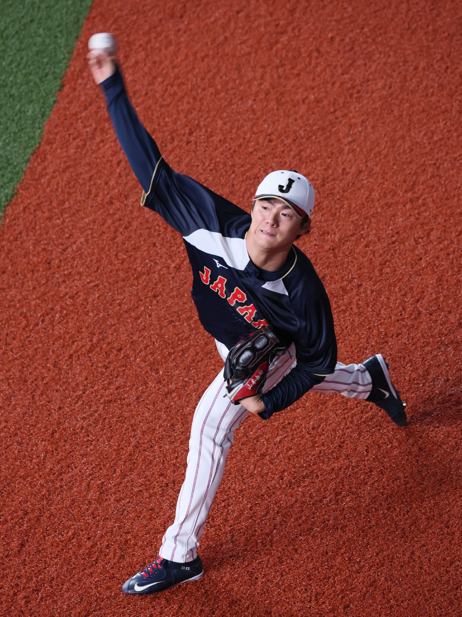 オリックスとの強化試合前、キャッチボールする日本代表の山本=2日、京セラドーム大阪