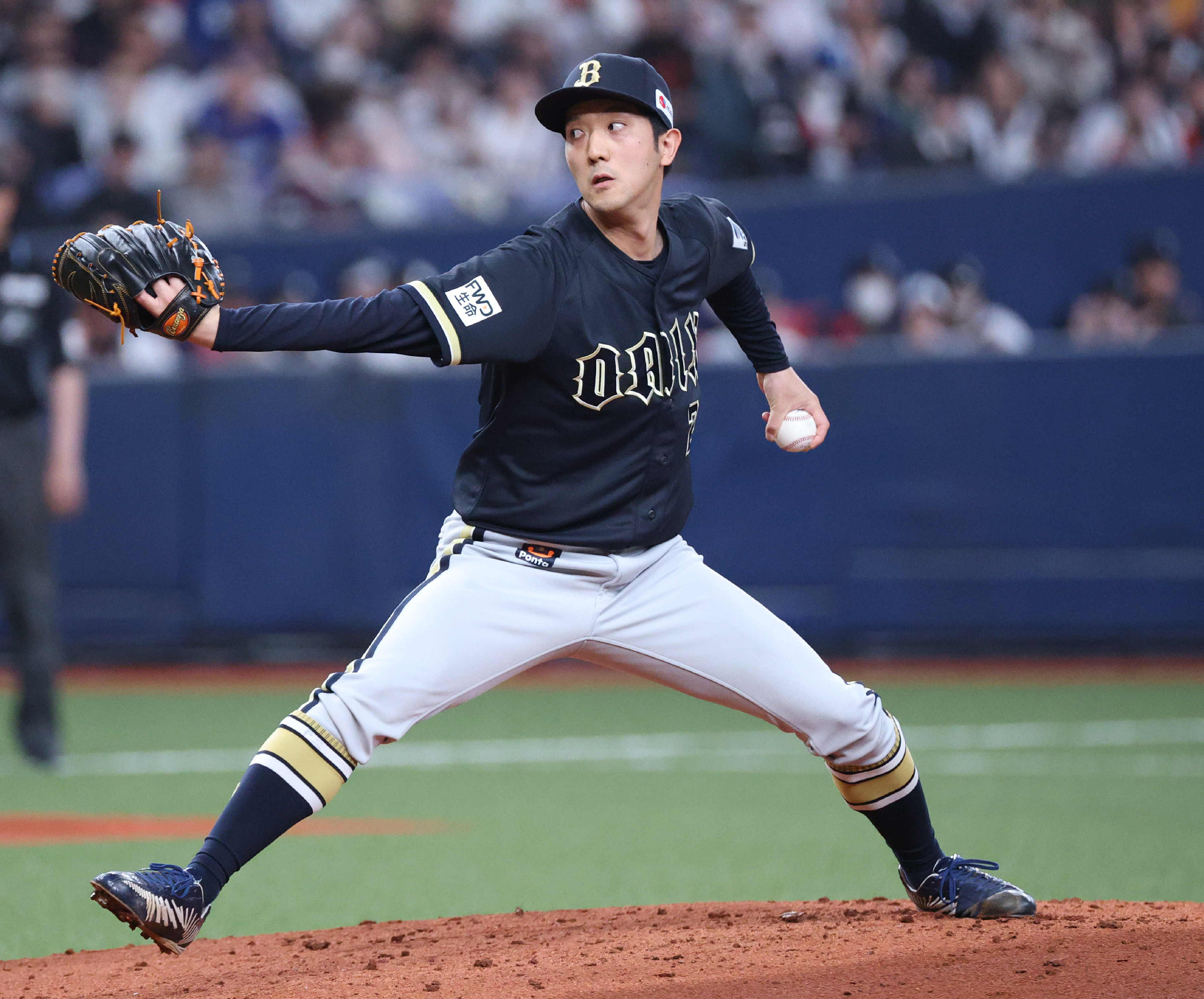 WBC・日本代表―オリックス。力投するオリックス2番手の田嶋=2日、京セラドーム大阪