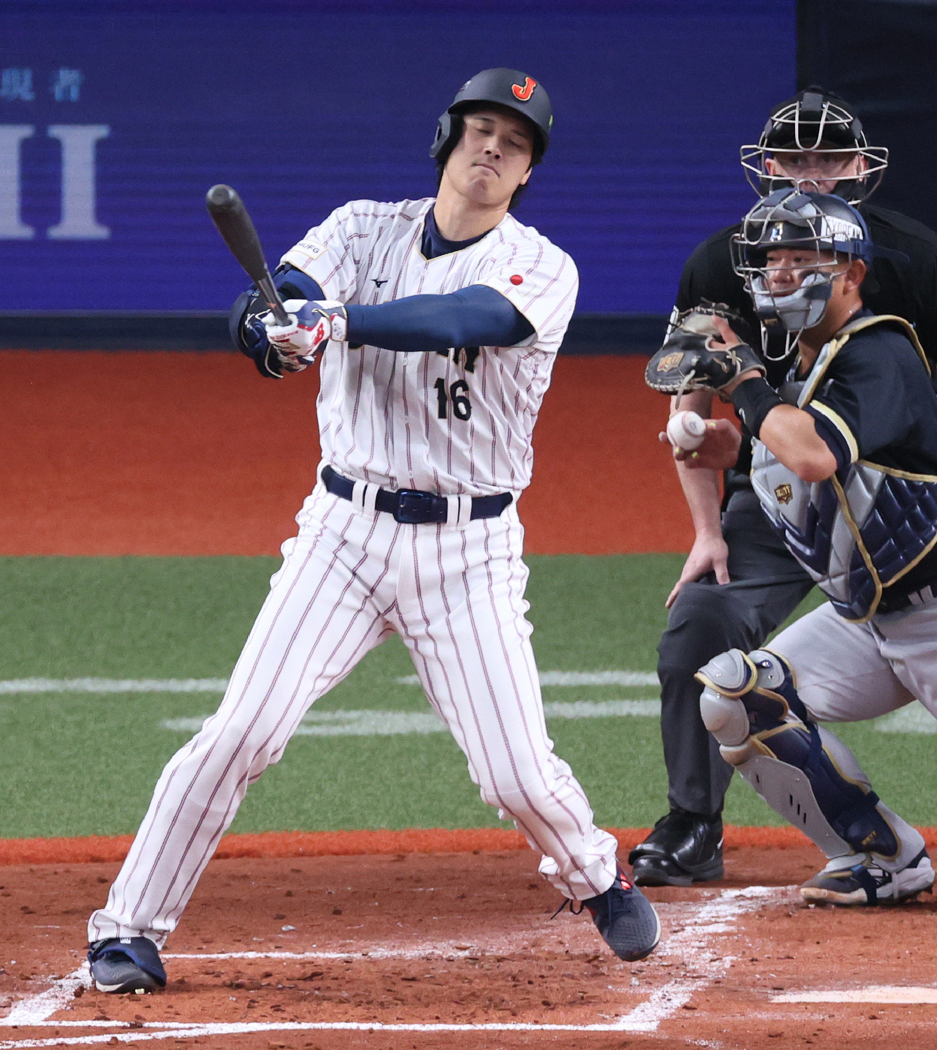 WBC・日本代表―オリックス。4回、空振り三振に倒れた日本代表の大谷=2日、京セラドーム大阪