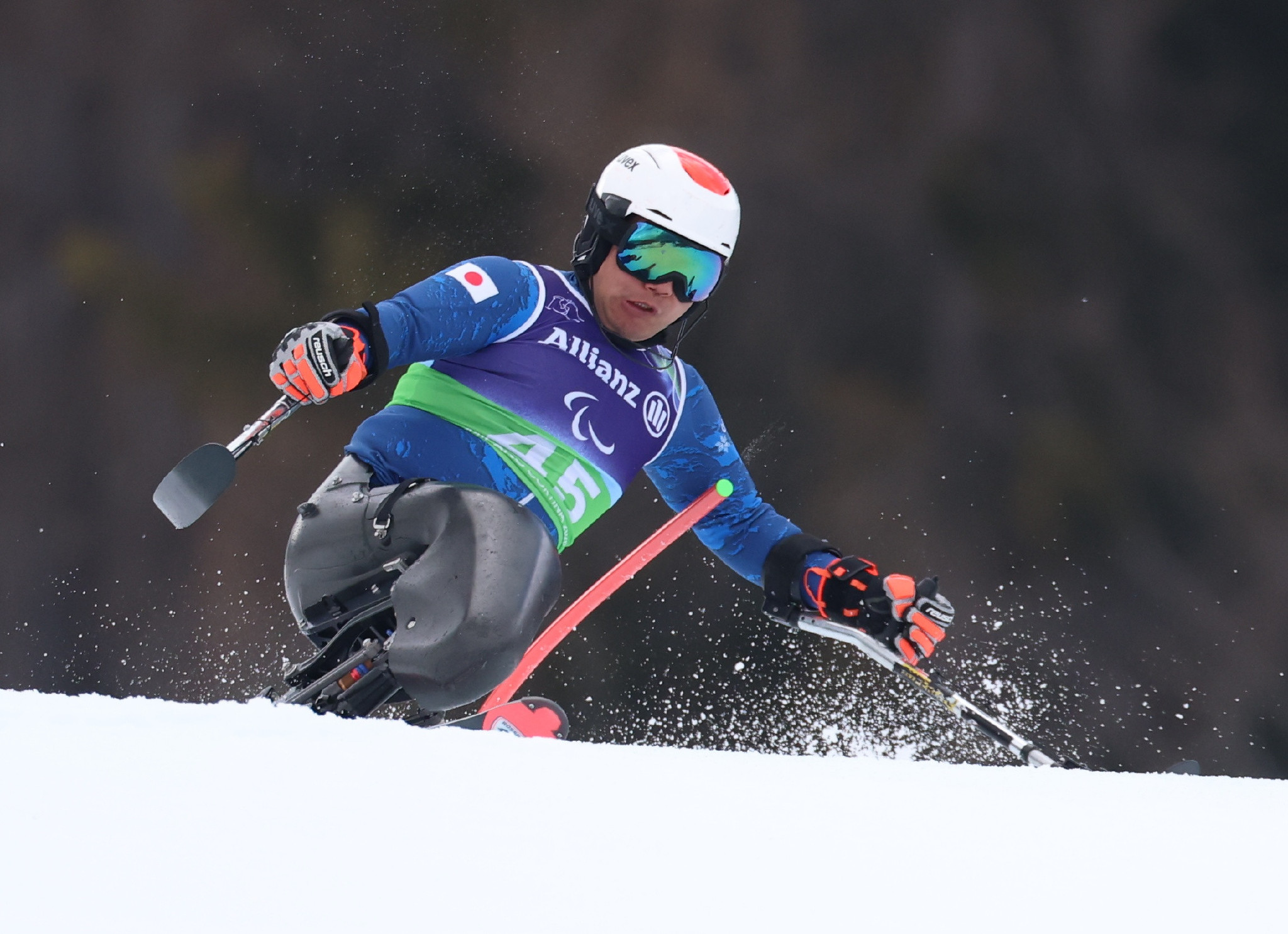 ミラノ・コルティナ・パラリンピック。アルペンスキー男子複合座位、後半の回転で滑走する鈴木猛史=10日、コルティナダンペッツォ