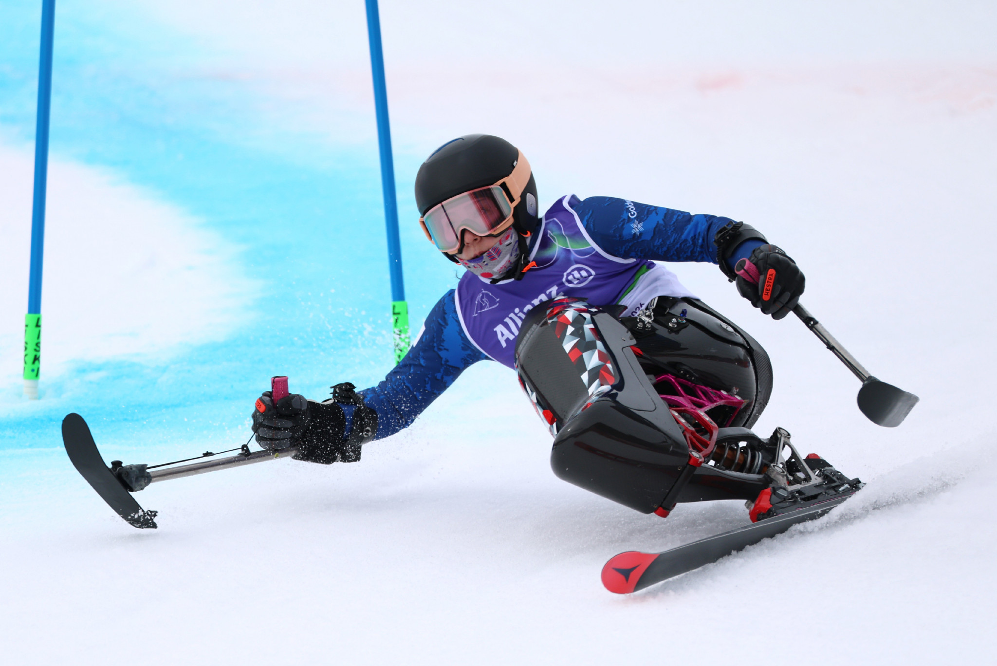 ミラノ・コルティナ・パラリンピック。アルペンスキー女子大回転座位、村岡桃佳の1回目の滑走=12日、コルティナダンペッツォ