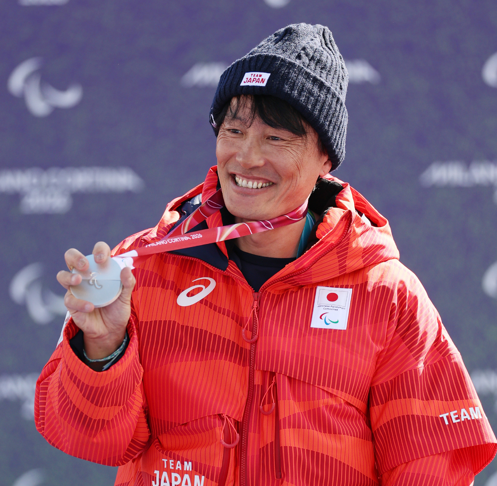 ミラノ・コルティナ・パラリンピック。スノーボード・バンクドスラローム男子下肢障害LL1で銀メダルを獲得した小栗大地。冬季パラの日本勢通算100個目のメダルとなった=13日、コルティナダンペッツォ