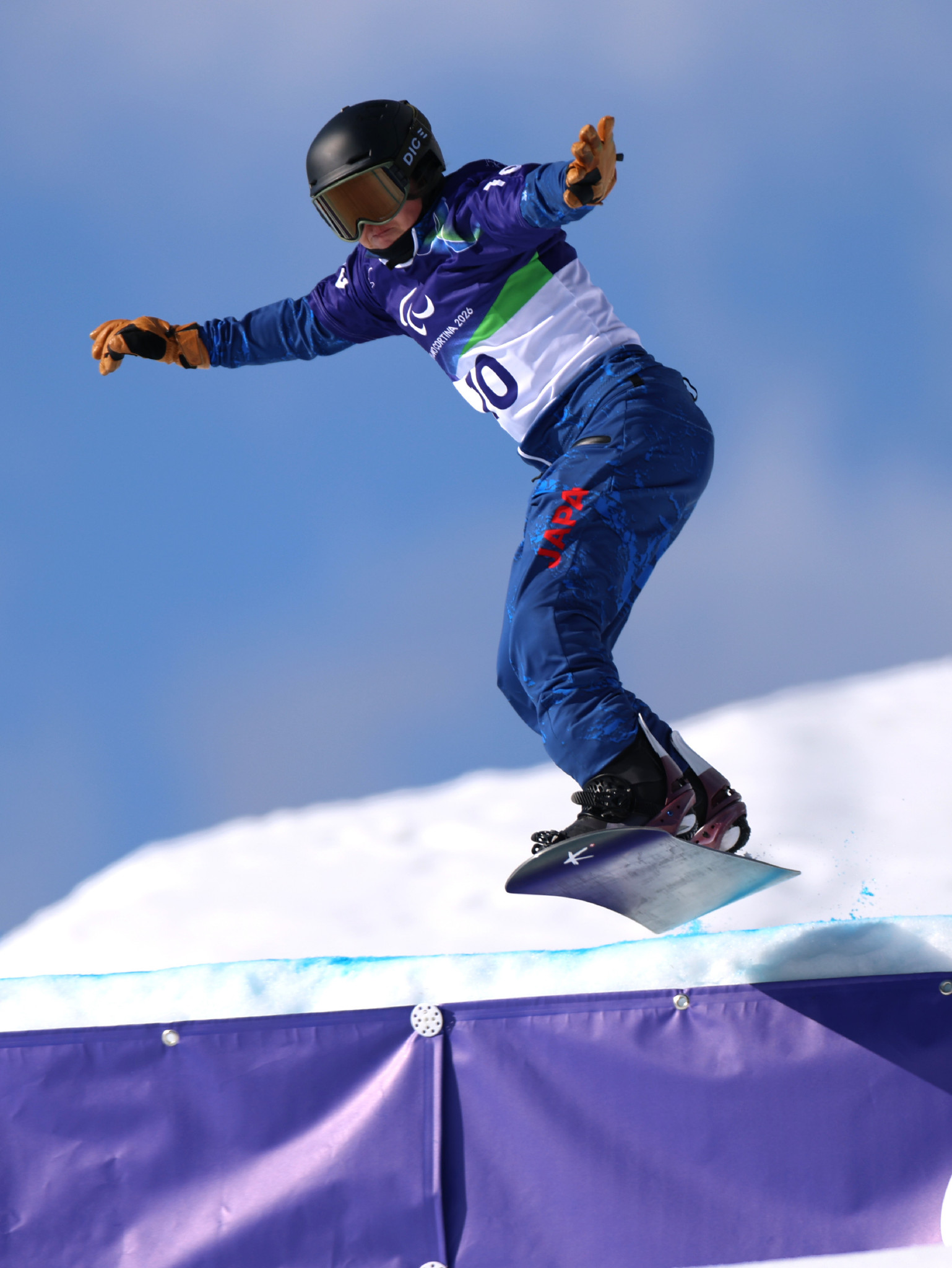 ミラノ・コルティナ・パラリンピック。スノーボード・バンクドスラローム女子下肢障害LL2、坂下恵里の1回目の滑走=13日、コルティナダンペッツォ