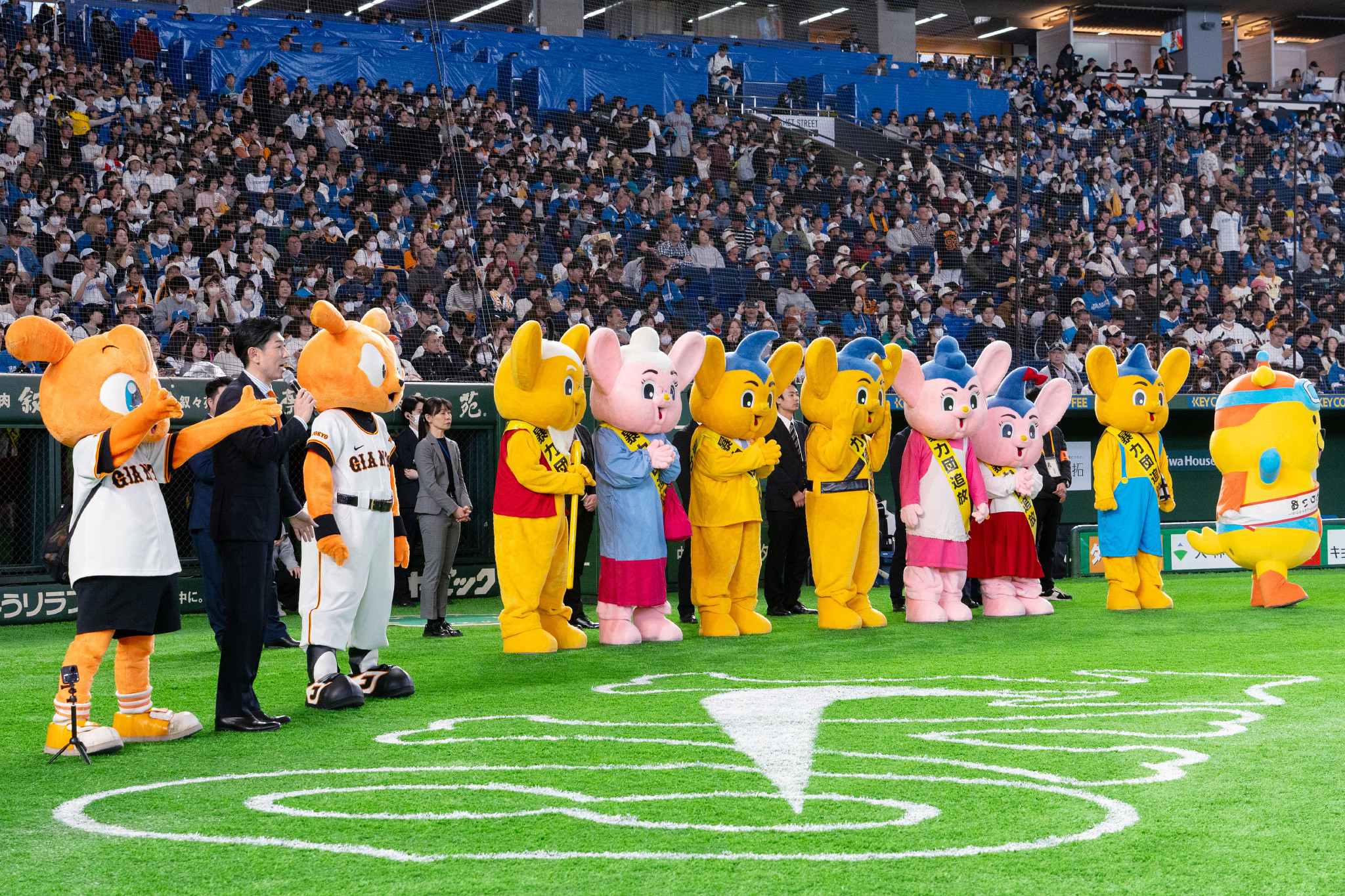 プロ野球巨人のマスコット・ジャビットと警視庁のピーポくんファミリーが15日、東京ドームに登場。暴力団排除イベントを行った。