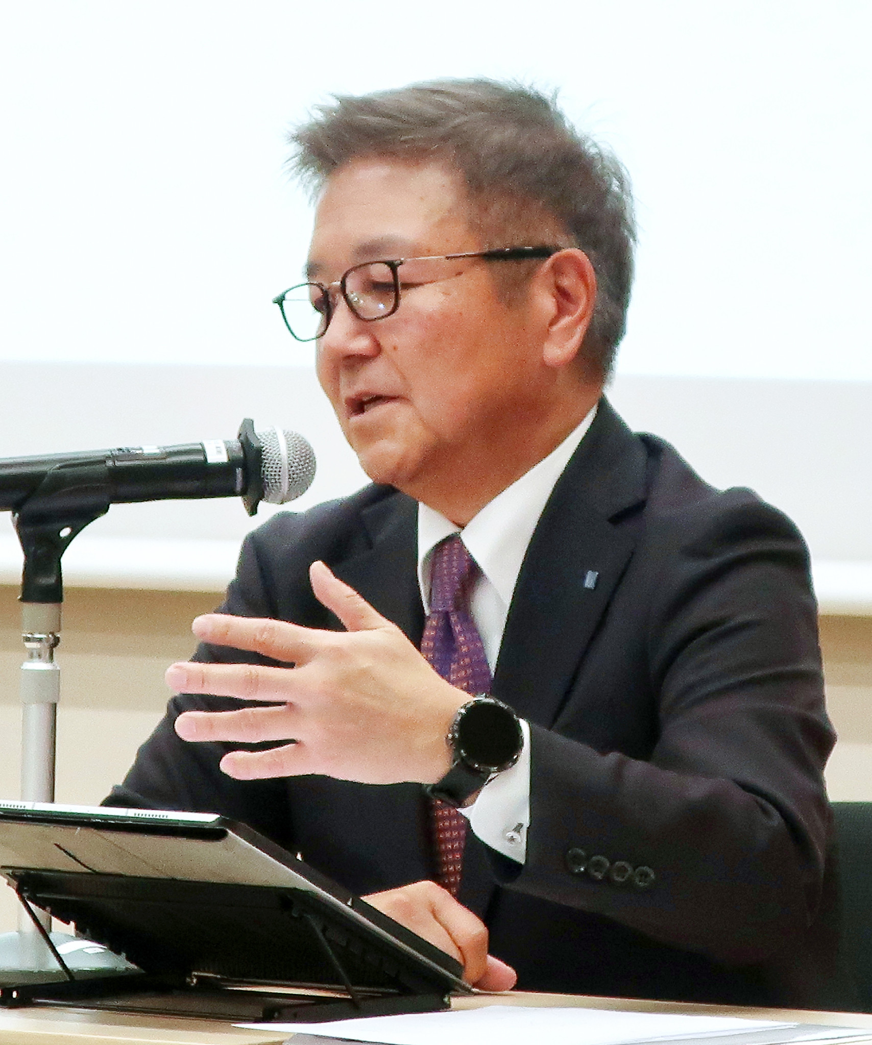 信用金庫の中央機関、信金中央金庫は19日、柴田弘之理事長(68)が退き、後任に須藤浩副理事長(61)を昇格させる人事を正式発表した。写真は記者会見する須藤氏=同日午後、東京都中央区