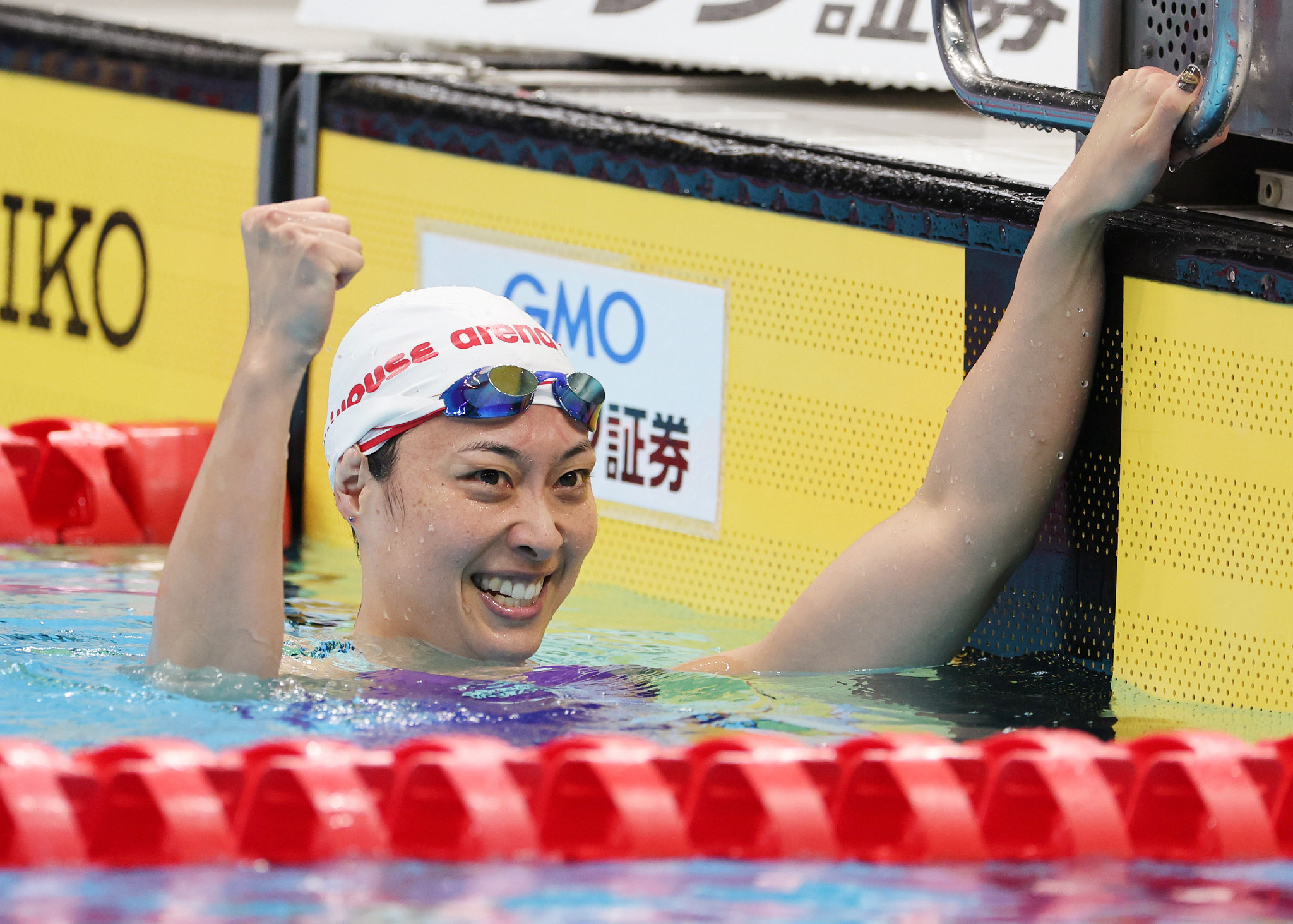 競泳日本選手権。女子100メートル平泳ぎを制した鈴木聡美=20日、東京アクアティクスセンター
