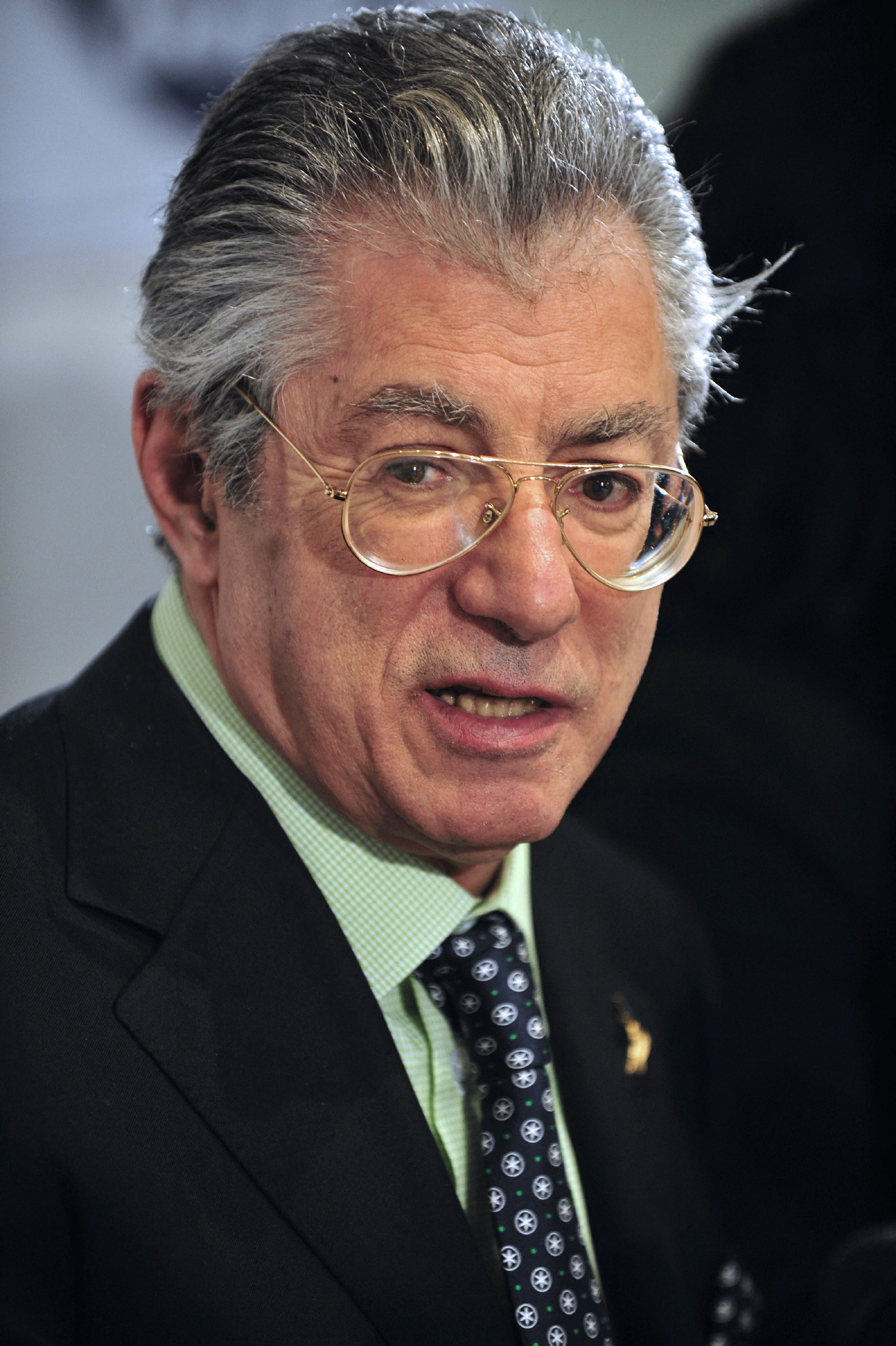 イタリアの有力政治家で、極右政党「北部同盟」(現・同盟)創設者のウンベルト・ボッシさんが19日、北部バレーゼの病院で死去した。84歳だった=2010年3月、北部ミラノ【AFP時事】