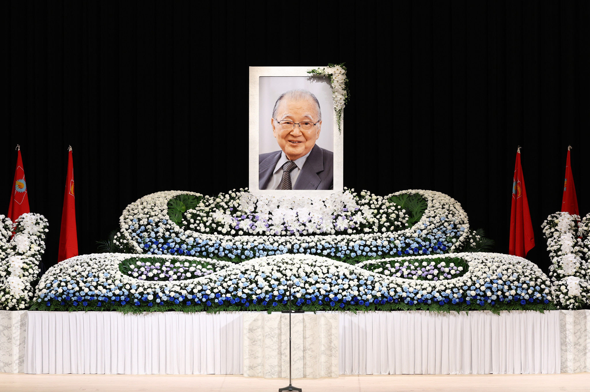 昨年12月に死去した共産党の不破哲三前議長の党葬が25日、東京都新宿区で営まれた。森英介衆院議長や自民党の鈴木俊一幹事長ら与野党幹部を含む900人余りが最後の別れを惜しんだ。