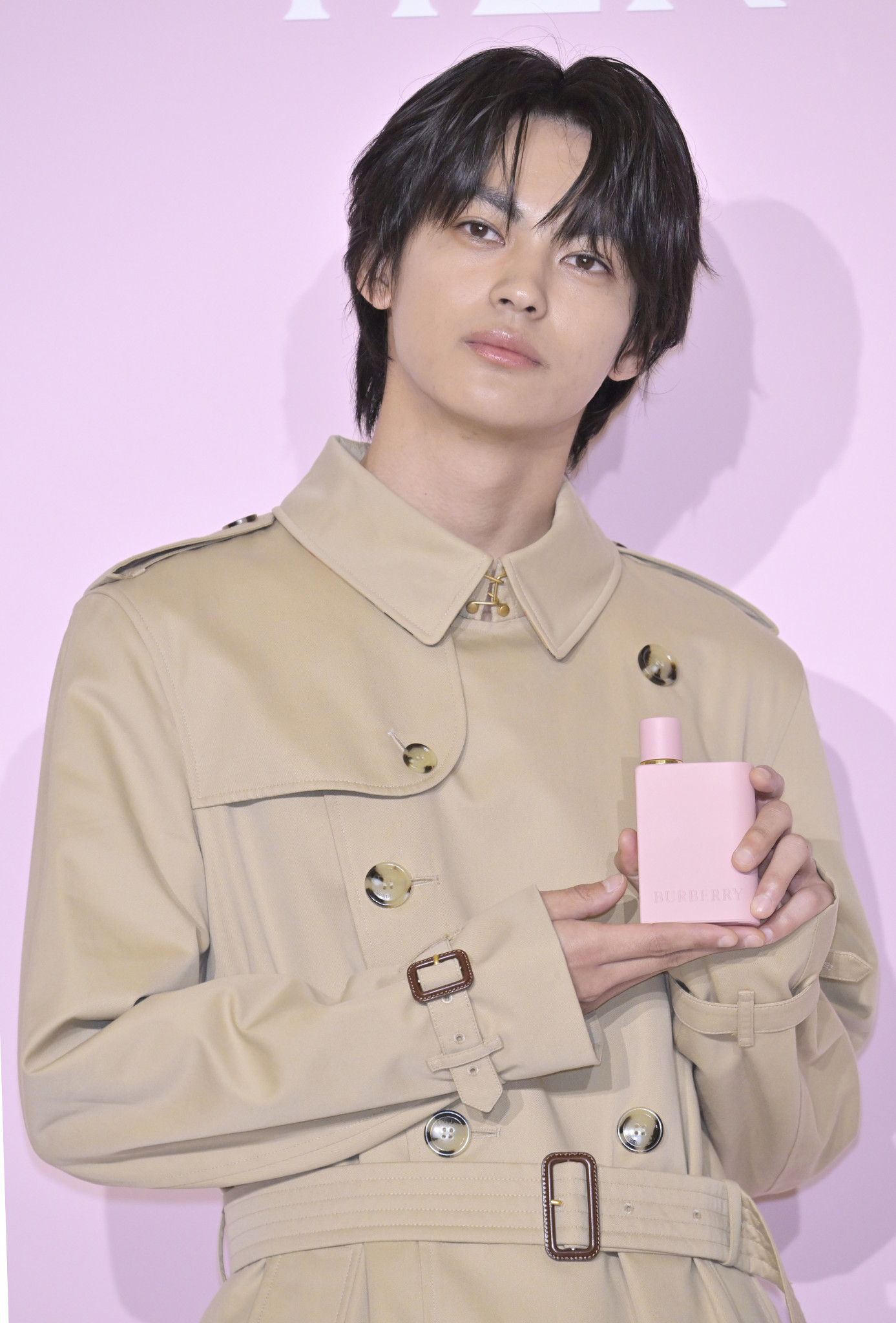 「バーバリービューティ」が開催したポップアップイベントのオープニングに神尾楓珠さんが来場。2月に発表した女優の平手友梨奈さんとの新婚生活を問われ、「幸せです」と笑顔で答えた=26日、都内【時事通信フォト】