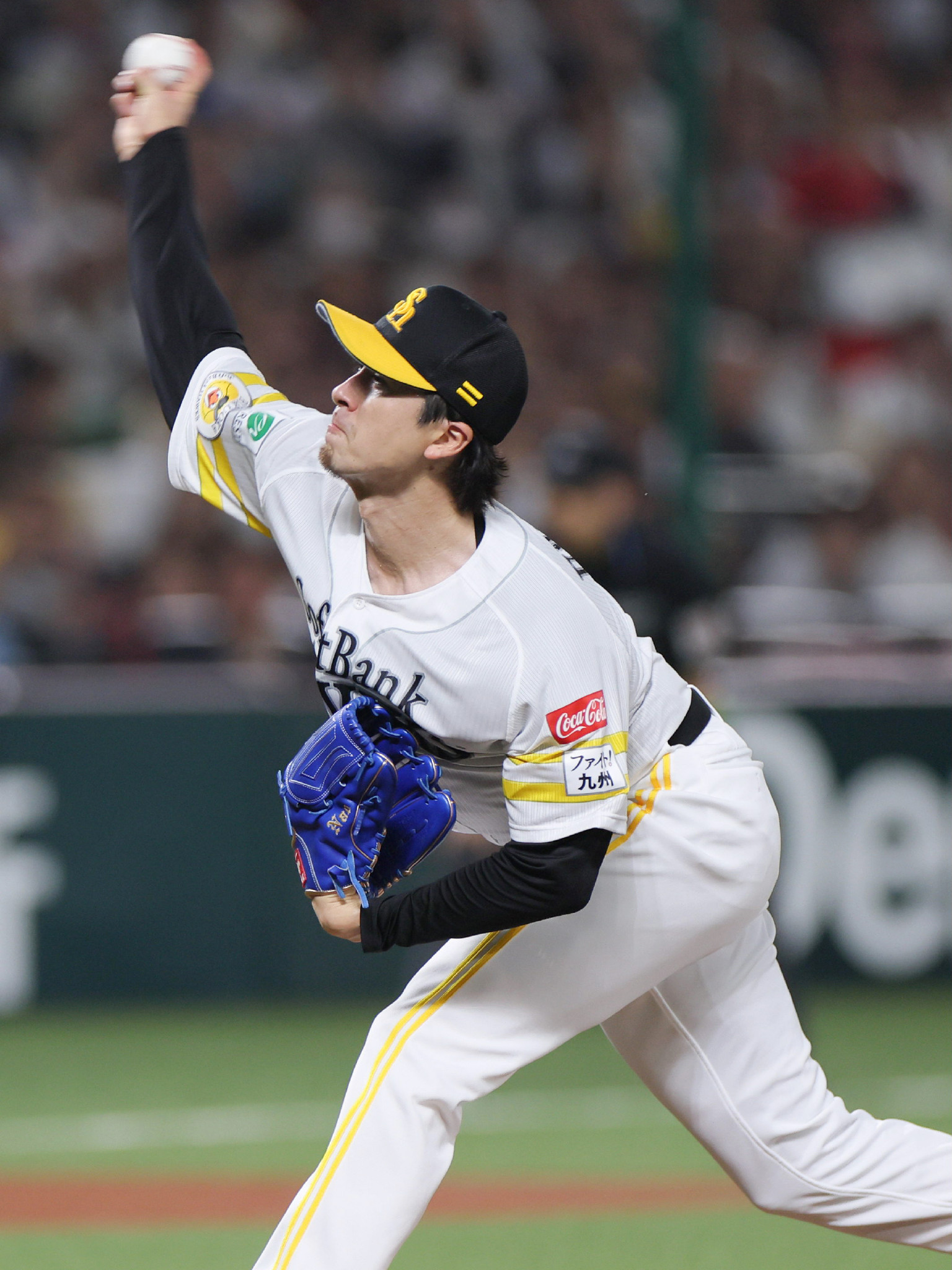 ソフトバンク―日本ハム。力投するソフトバンク先発の上沢=27日、みずほPayPay