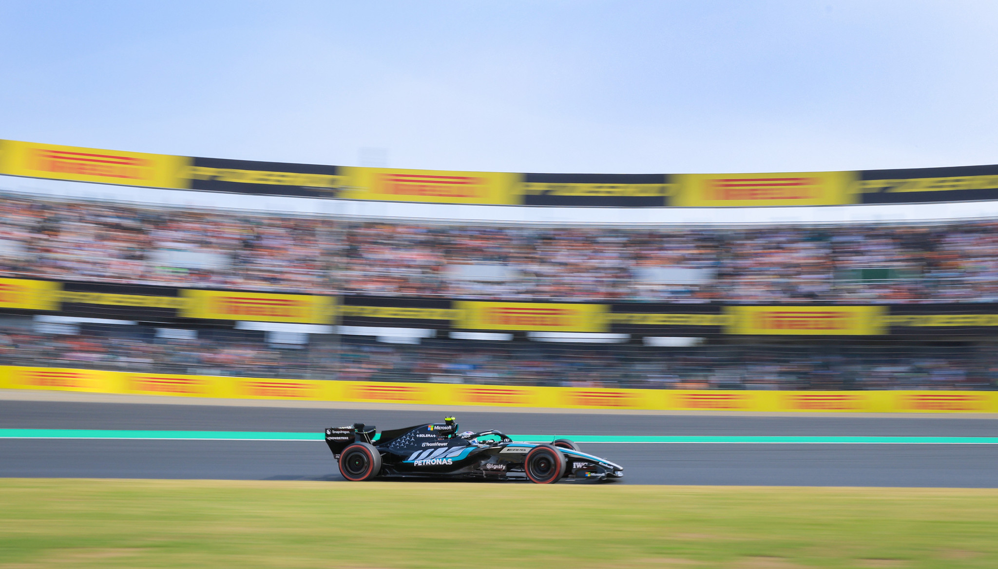 公式予選、メルセデスのアントネッリの走り=28日、三重・鈴鹿サーキット