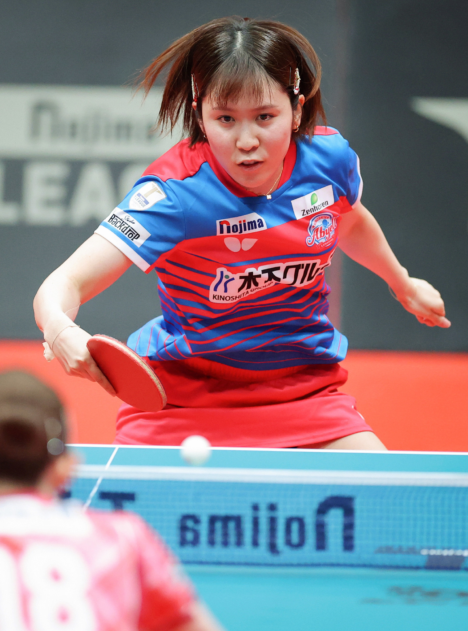 プレーする平野 卓球Tリーグ