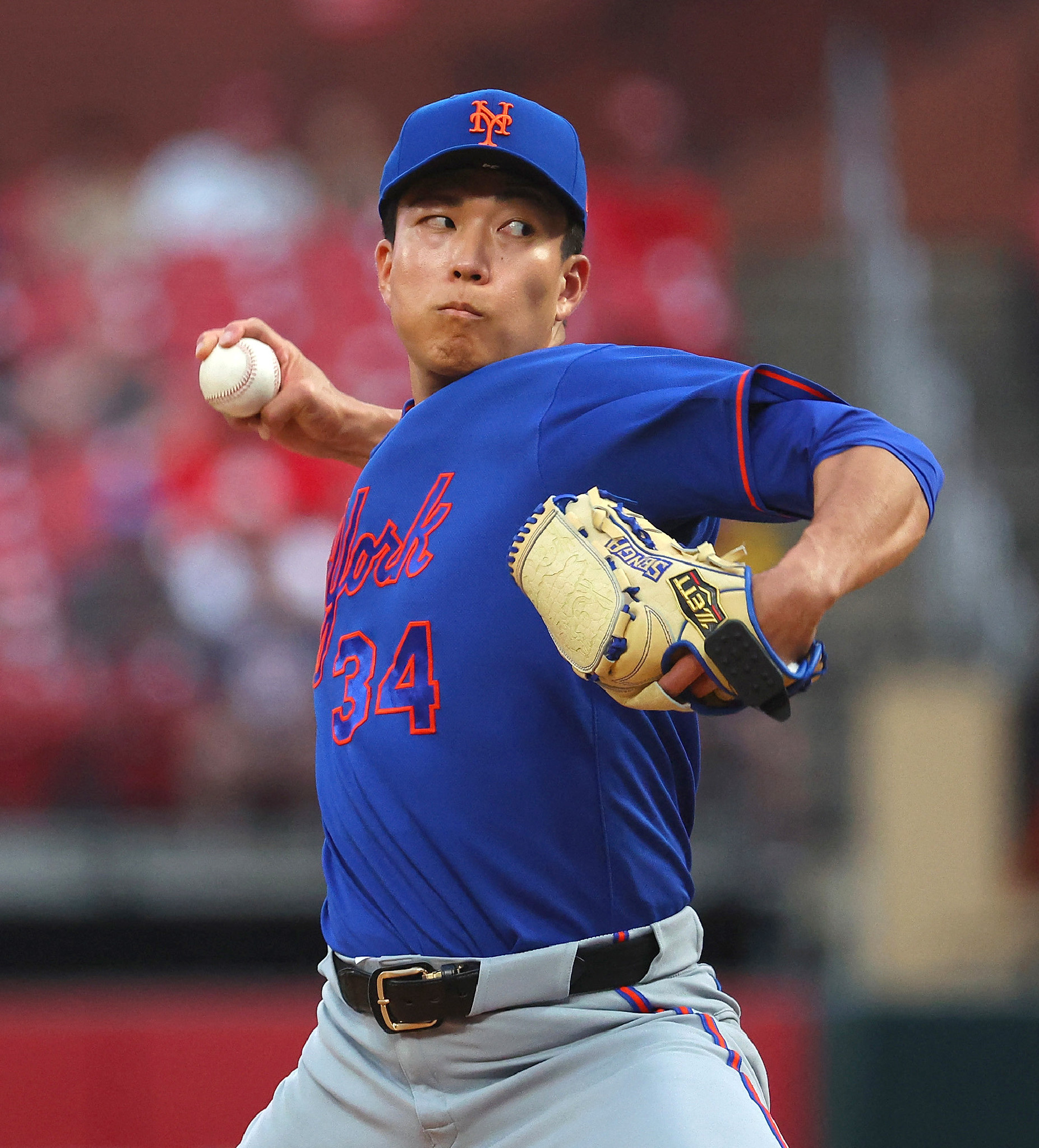 カージナルス戦に先発登板し、力投するメッツの千賀=31日、セントルイス