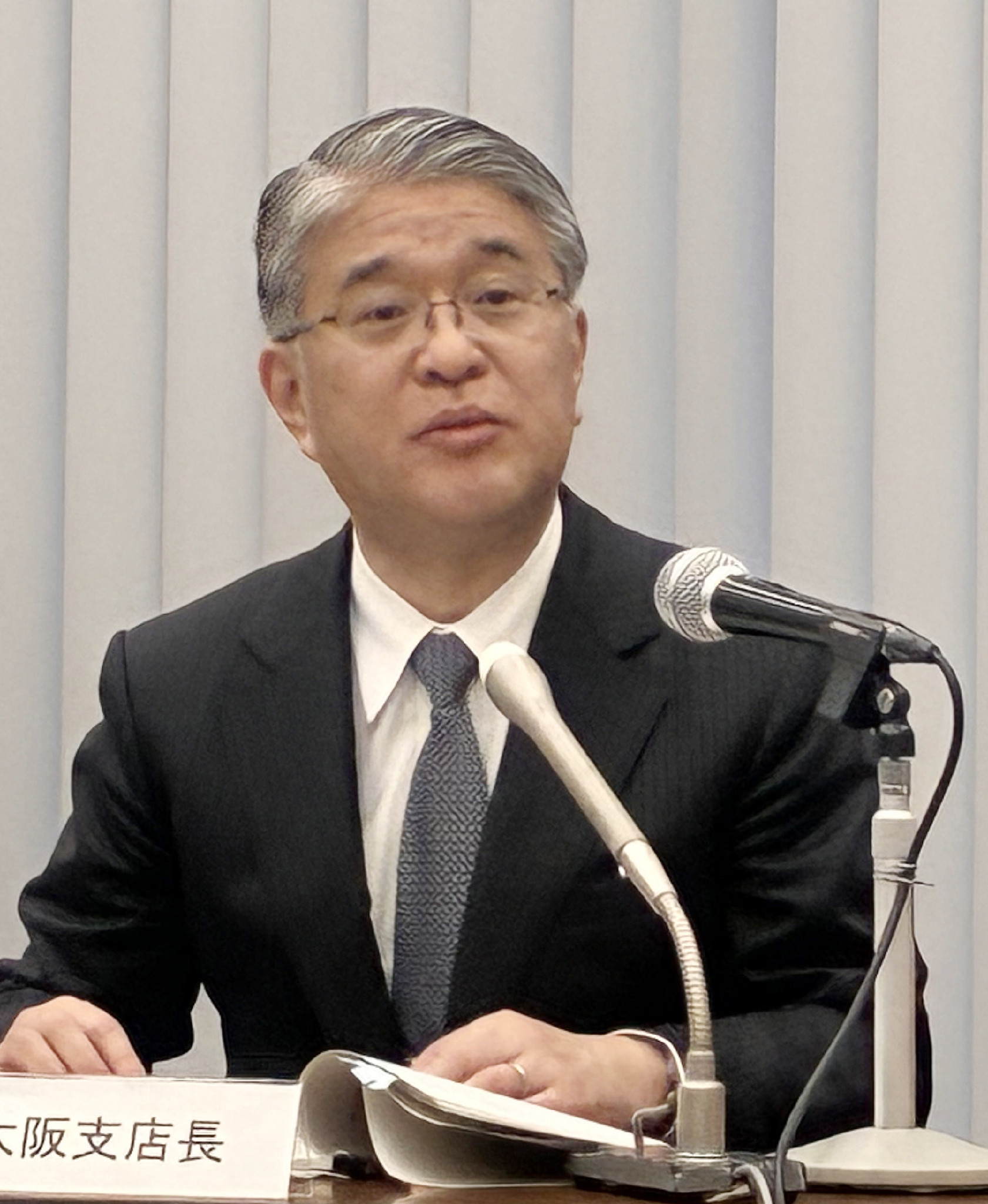 記者会見する日銀大阪支店長