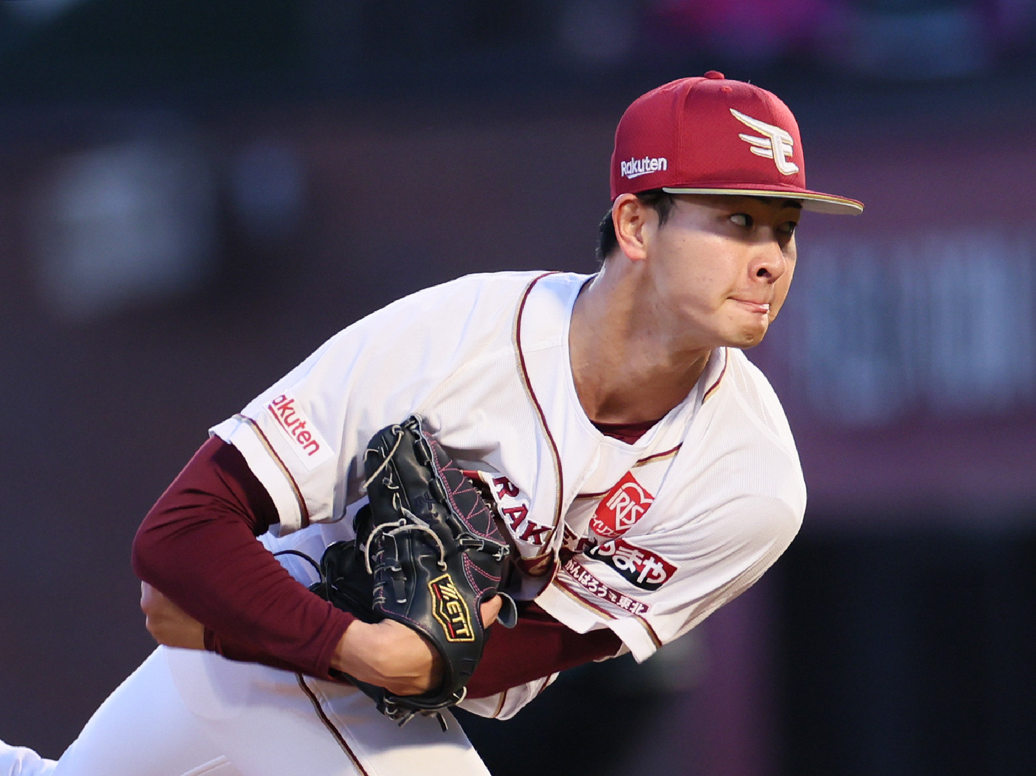 楽天―日本ハム。力投する楽天先発の古謝=8日、楽天モバイル