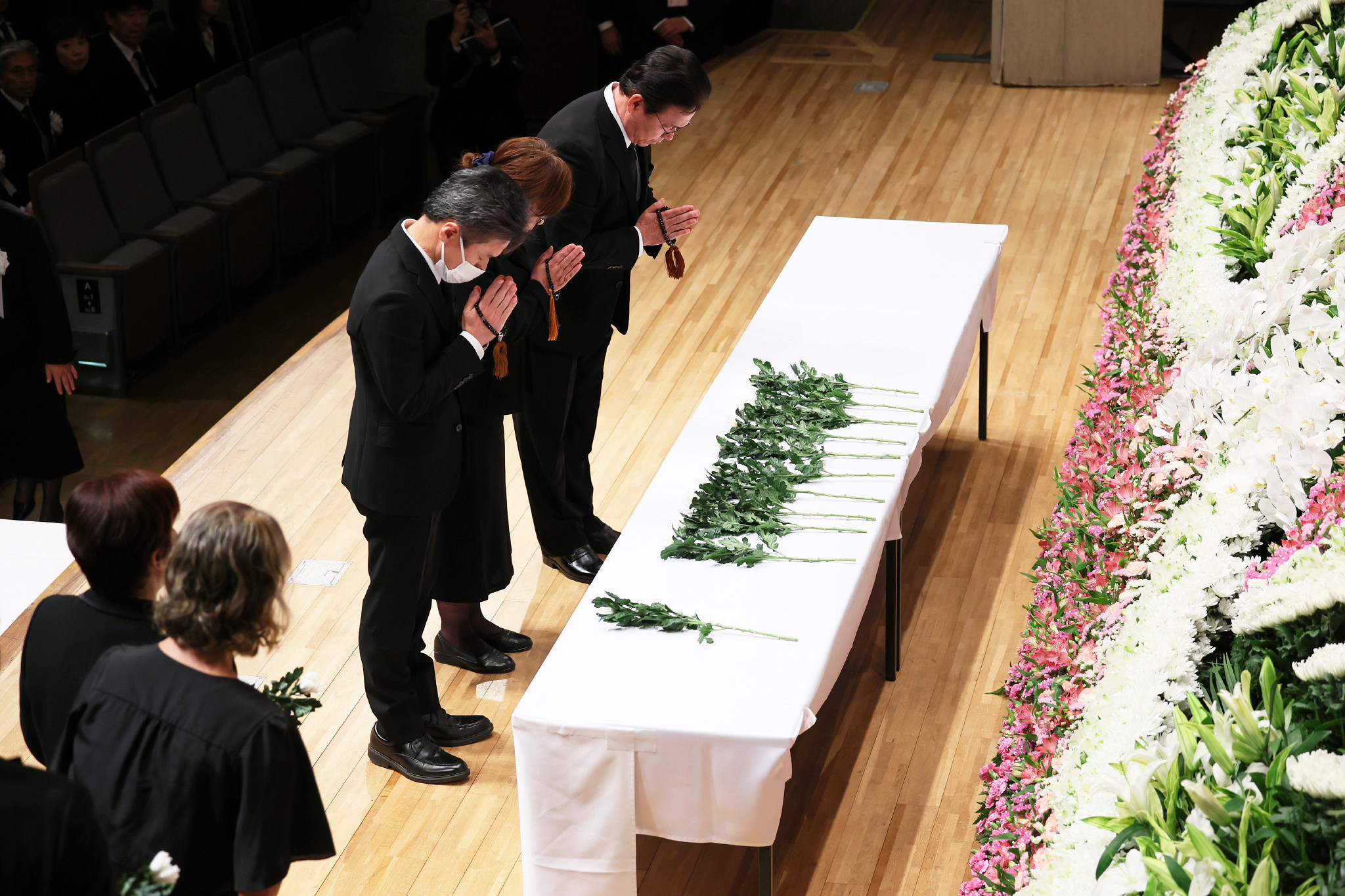 献花する遺族ら