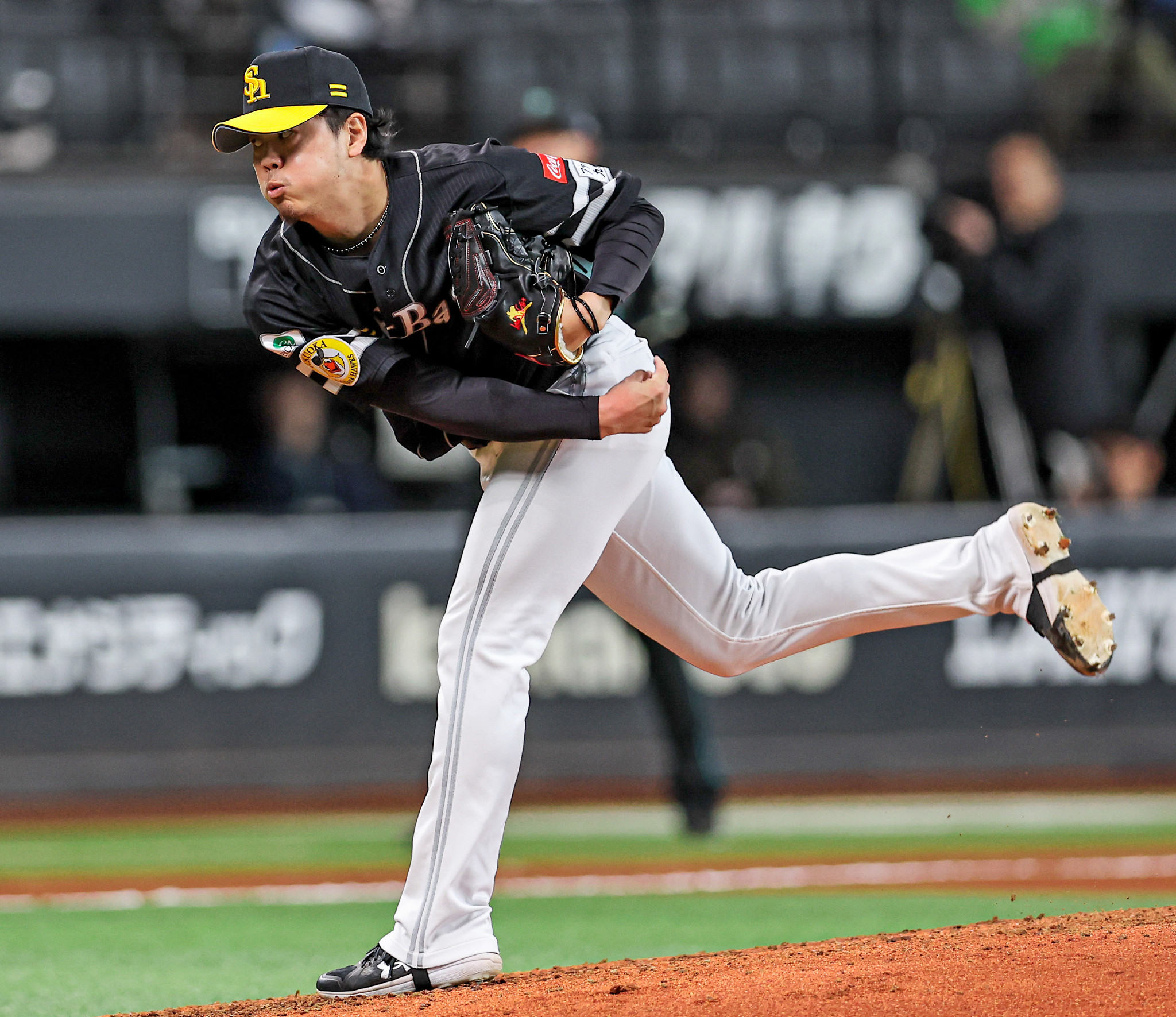 日本ハム―ソフトバンク。力投するソフトバンク3番手の上茶谷=12日、エスコンF