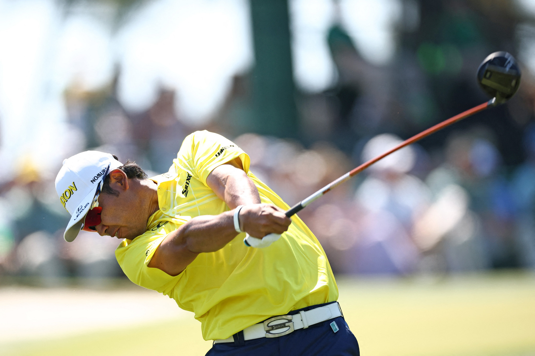 男子ゴルフのメジャー第1戦、マスターズ・トーナメント最終ラウンド。5年ぶり2度目の優勝を目指した松山英樹は通算5アンダーで12位だった=12日、米ジョージア州オーガスタ【AFP時事】