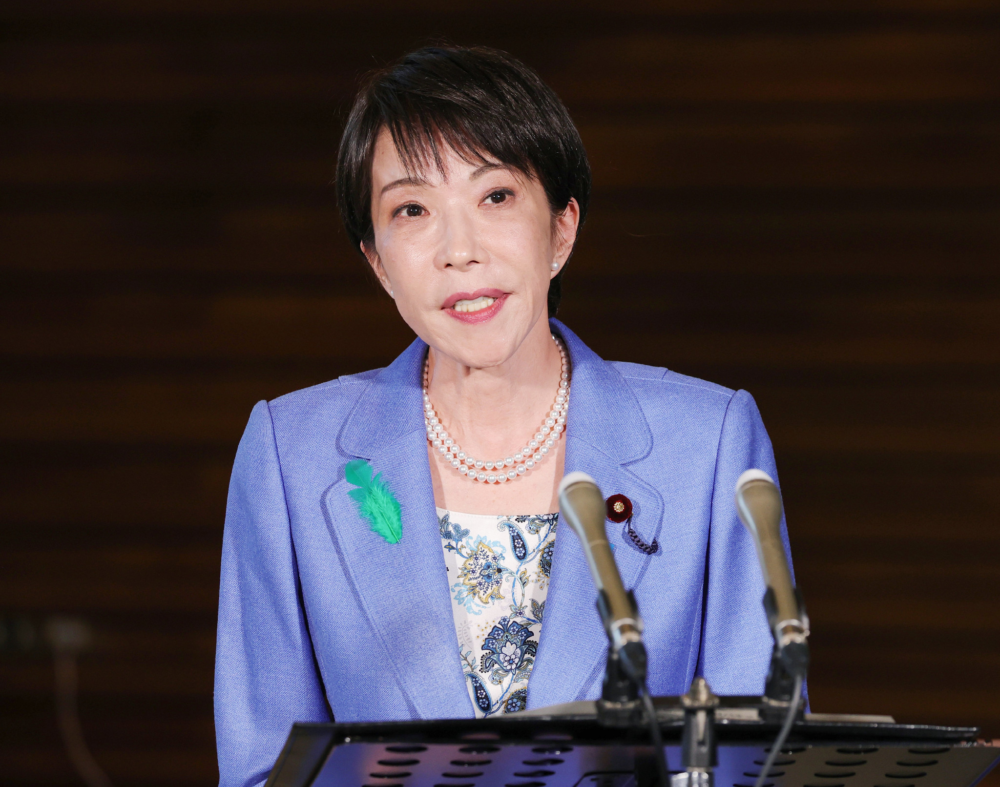 高市早苗首相は13日、パキスタンのシャリフ首相と電話会談し、イラン情勢を巡り協議した。早期の事態沈静化とホルムズ海峡の安定回復に向け、協力していくことで一致。写真は、取材に応じる高市首相=首相官邸