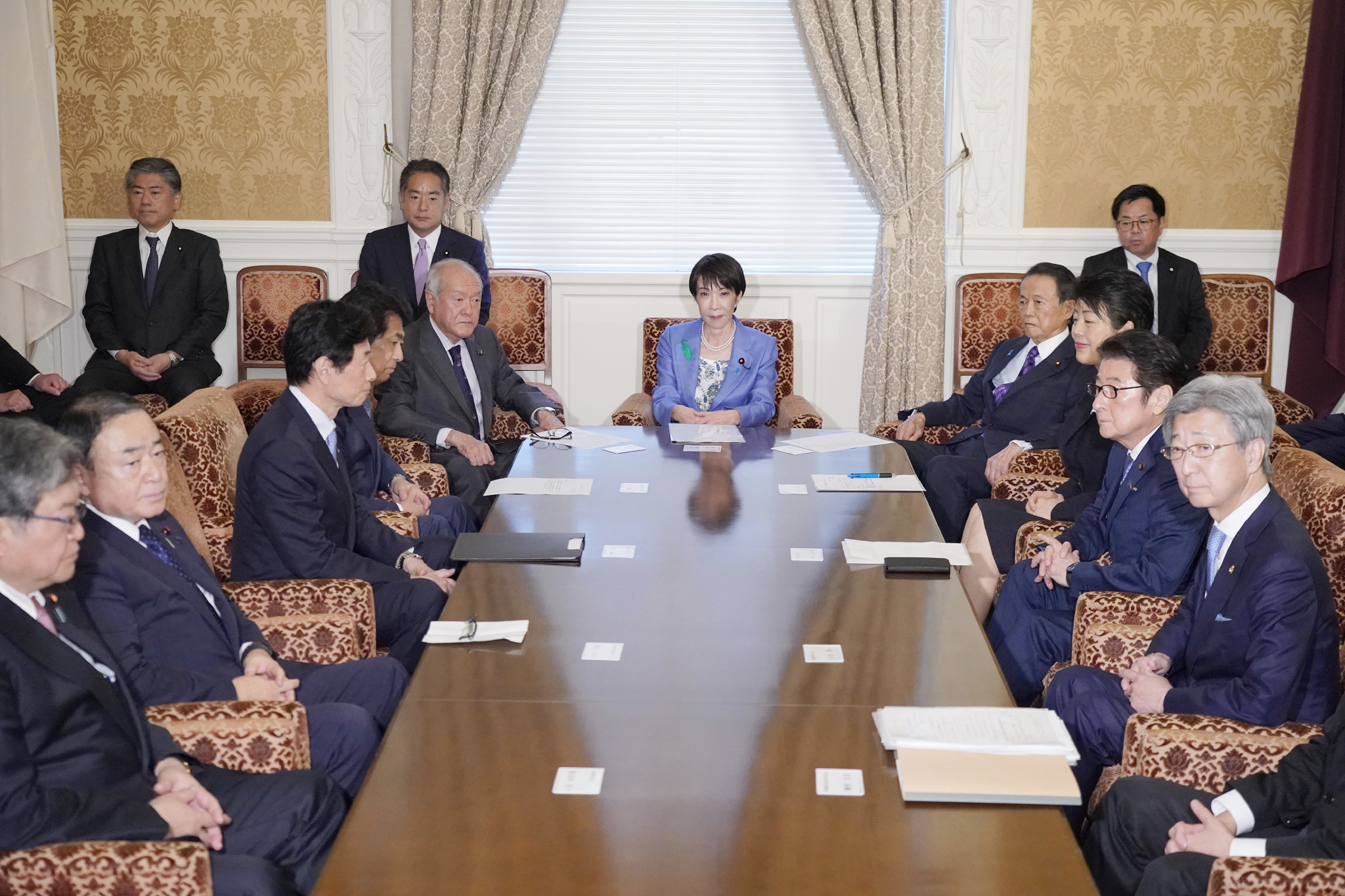 自民役員会に臨む高市首相ら