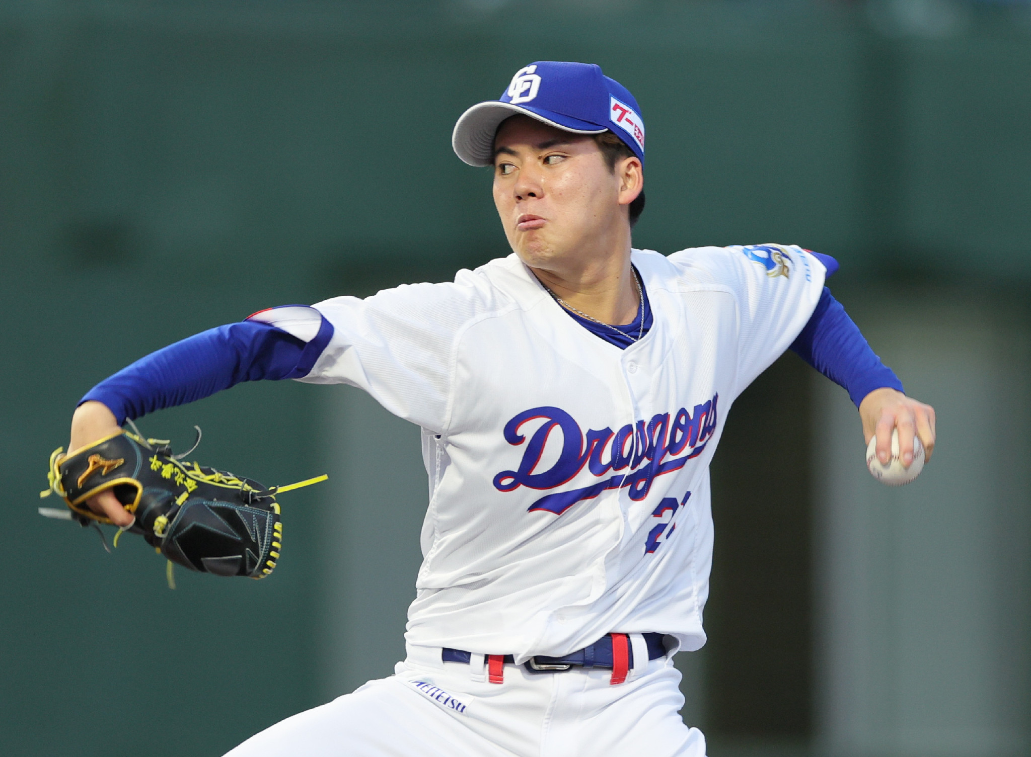 中日―広島。力投する中日先発の金丸=14日、豊橋