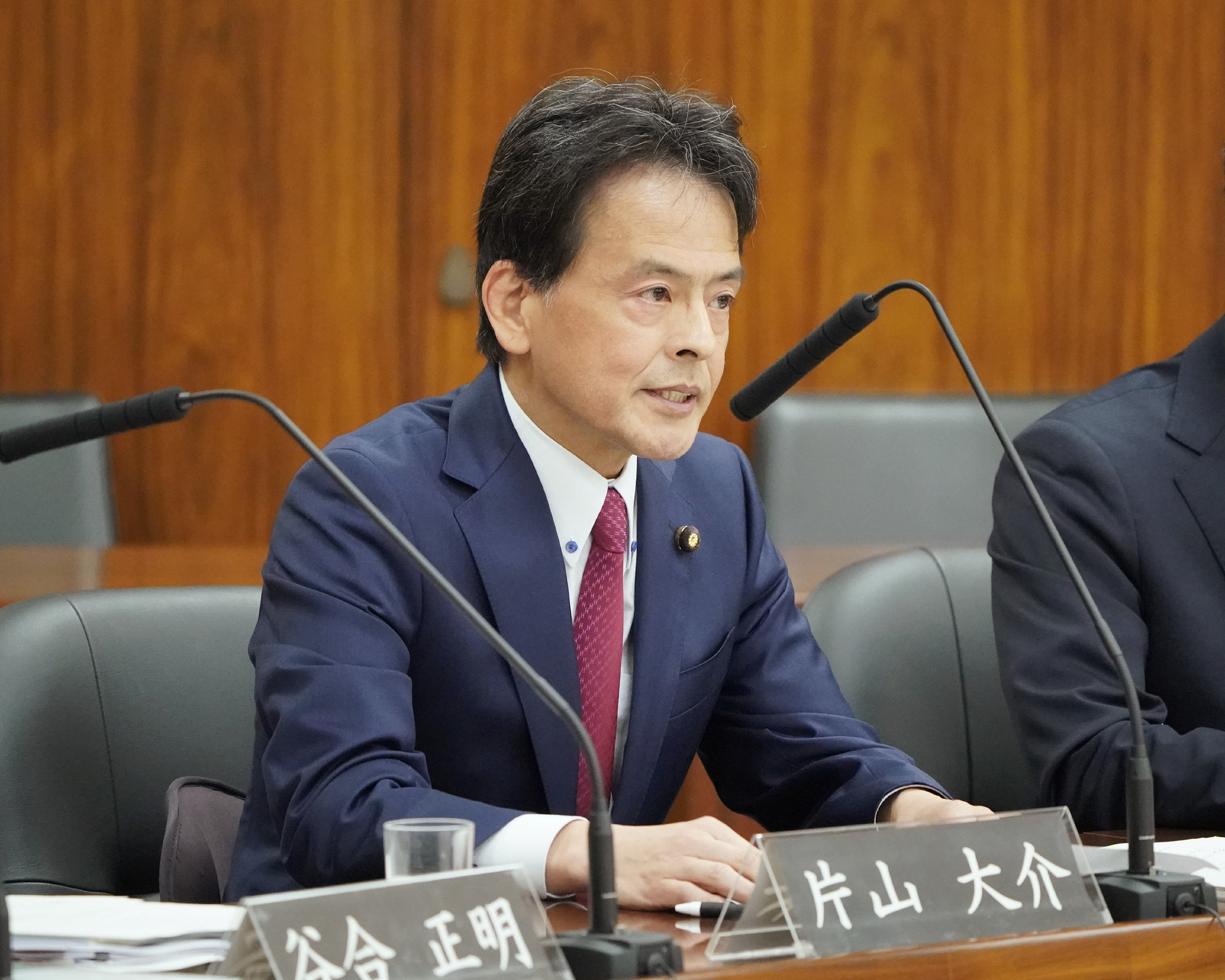 参院憲法審査会で意見表明する日本維新の会の片山大介氏=15日午後、国会内