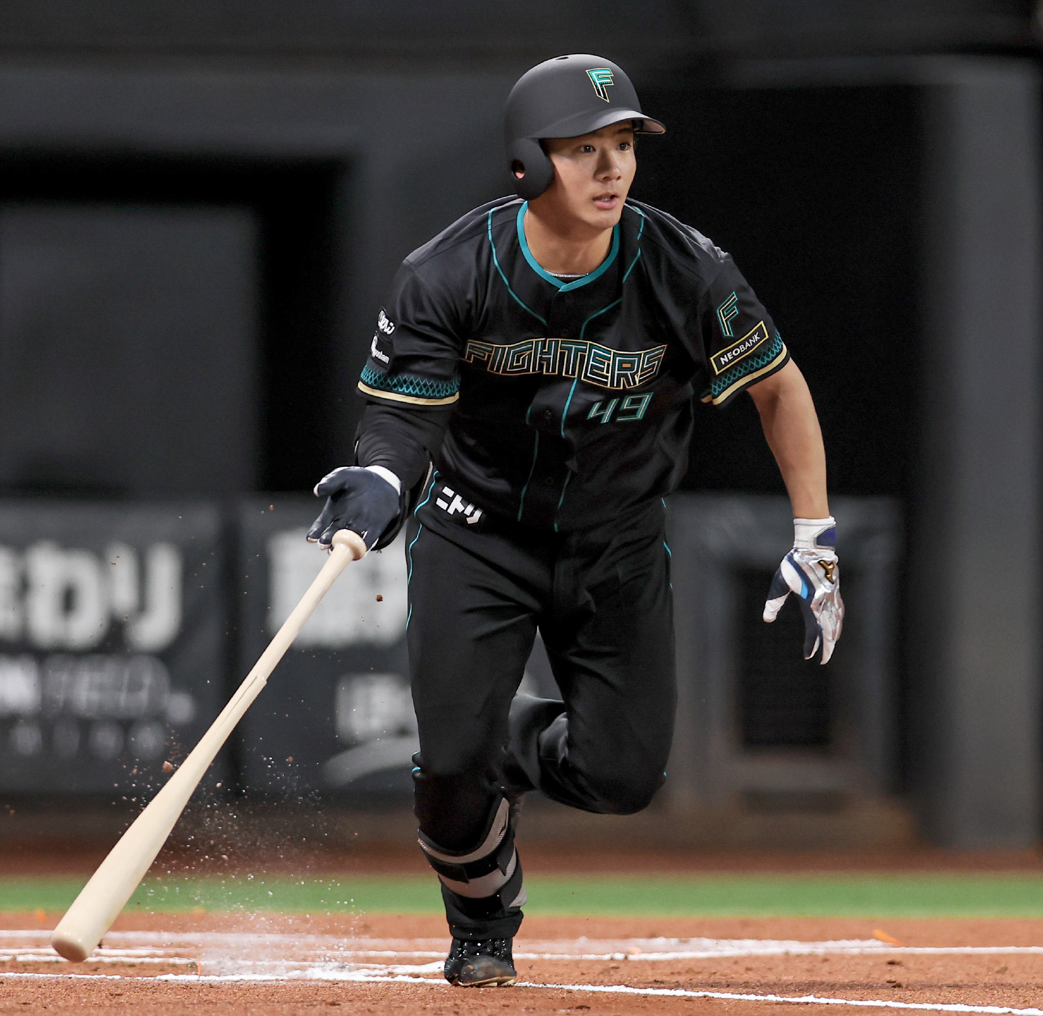 日本ハム―西武。1回、二塁打を放つ日本ハムの大塚=17日、エスコンF
