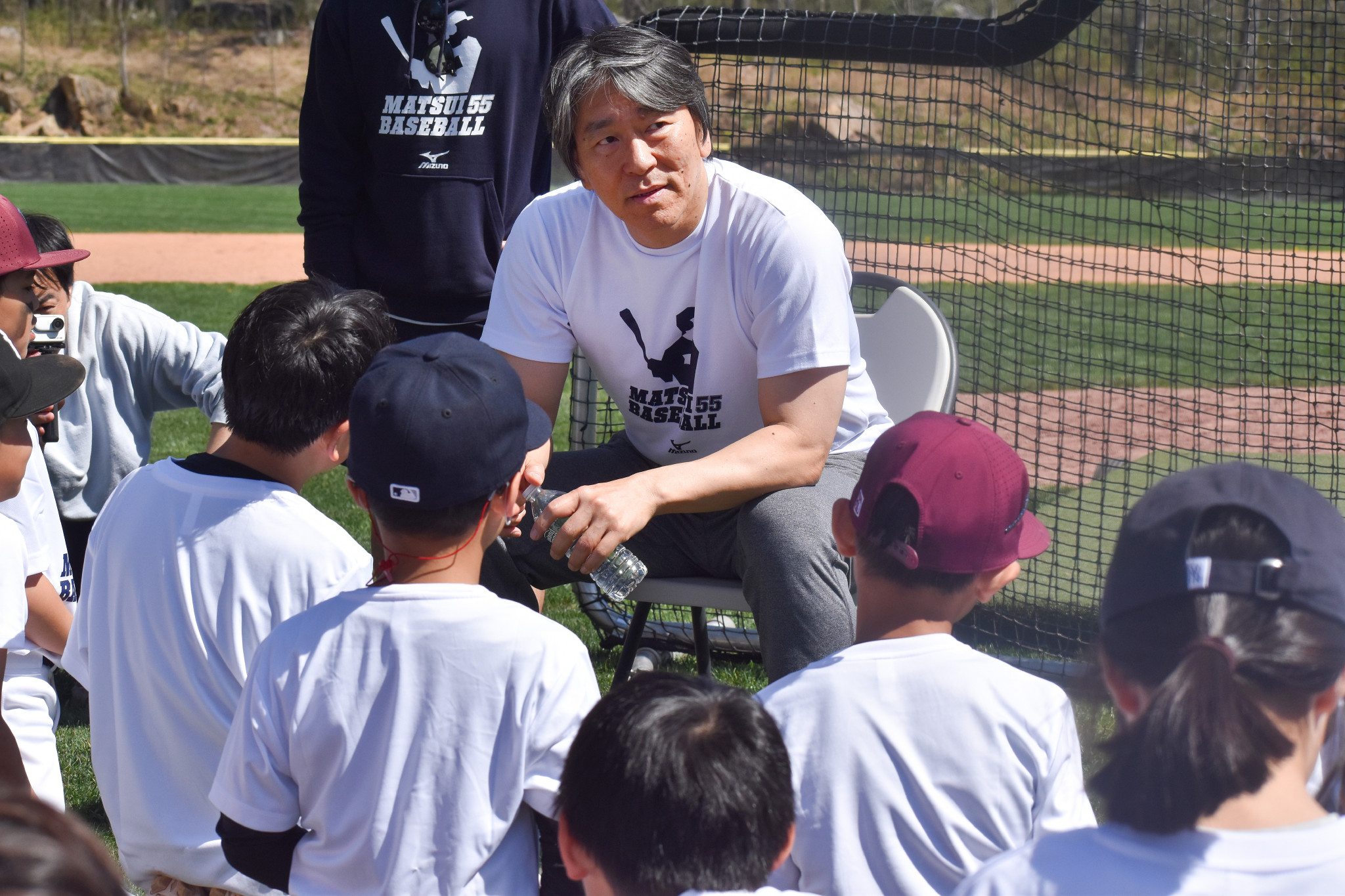 プロ野球巨人や米大リーグのヤンキースなどで活躍した松井秀喜さんが18日、ニューヨーク州で野球教室を開催した。自身のフリー打撃では逆風に苦しみ30スイング近くを要したが、最後に柵越えを披露した。