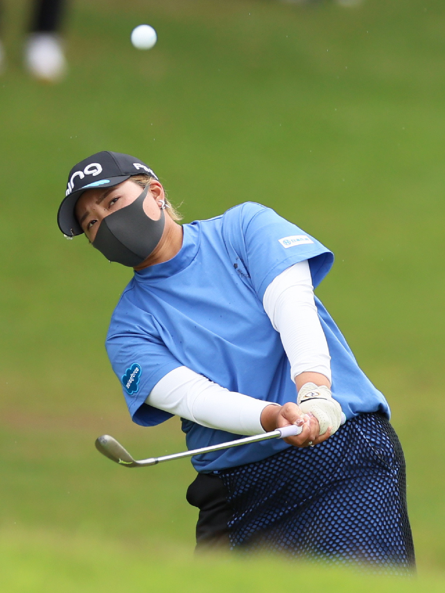 KKT杯バンテリン・レディースオープン最終日。18番、第3打を放つ鈴木愛=19日、熊本空港CC