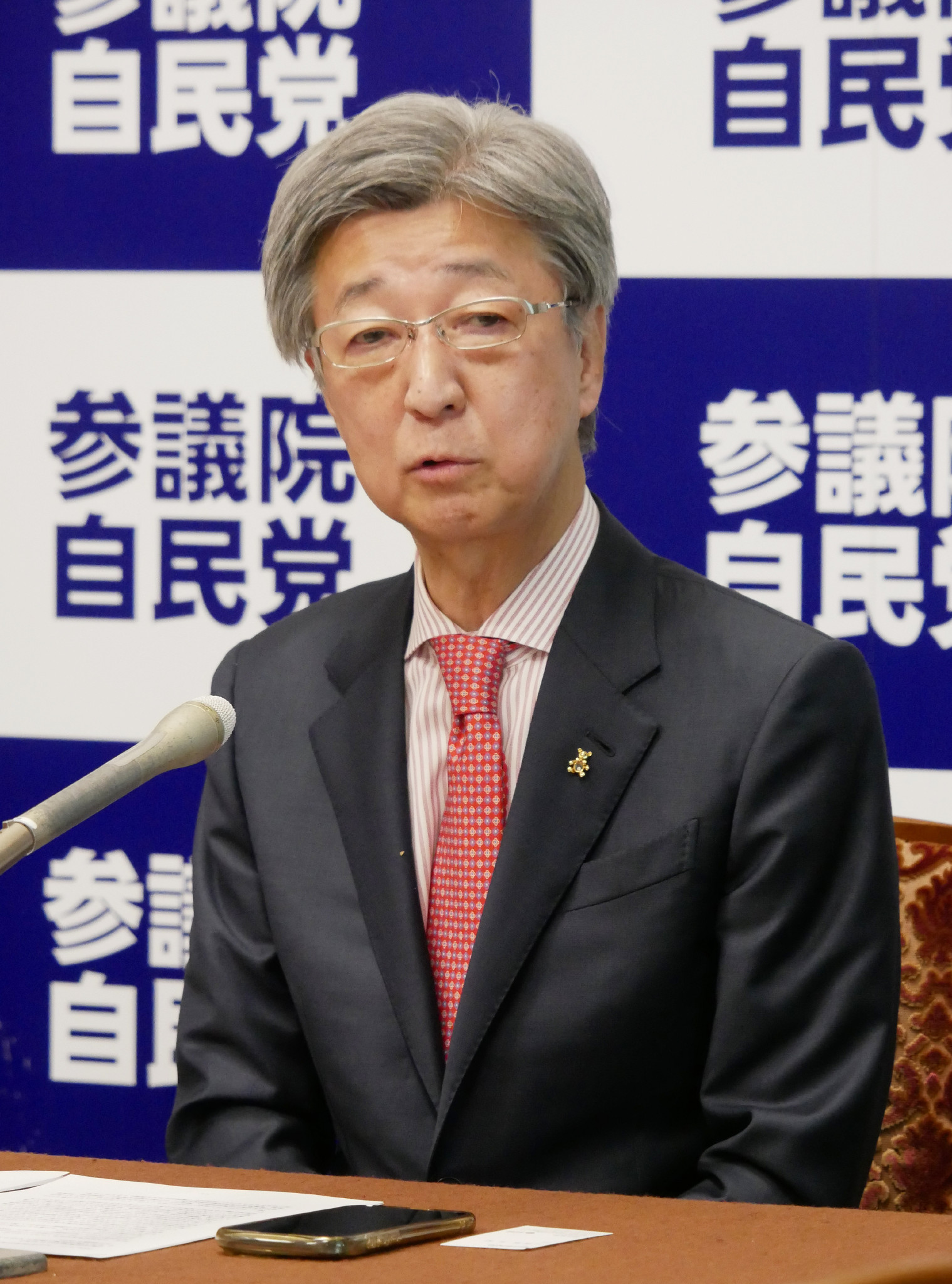 記者会見する石井参院幹事長