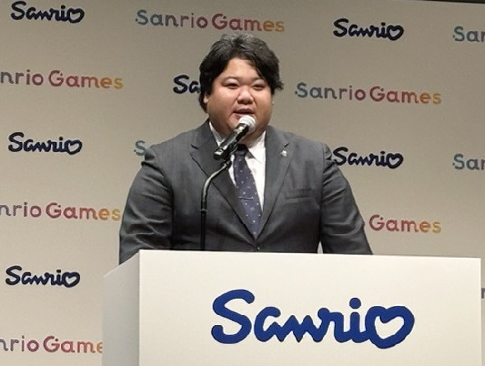 サンリオは21日、ゲーム事業に本格参入すると発表した。自社ブランド「SanrioGames(サンリオゲームズ)」を立ち上げ、今後3年間で10本程度のソフトを投入する。写真は記者会見をする辻朋邦社長。