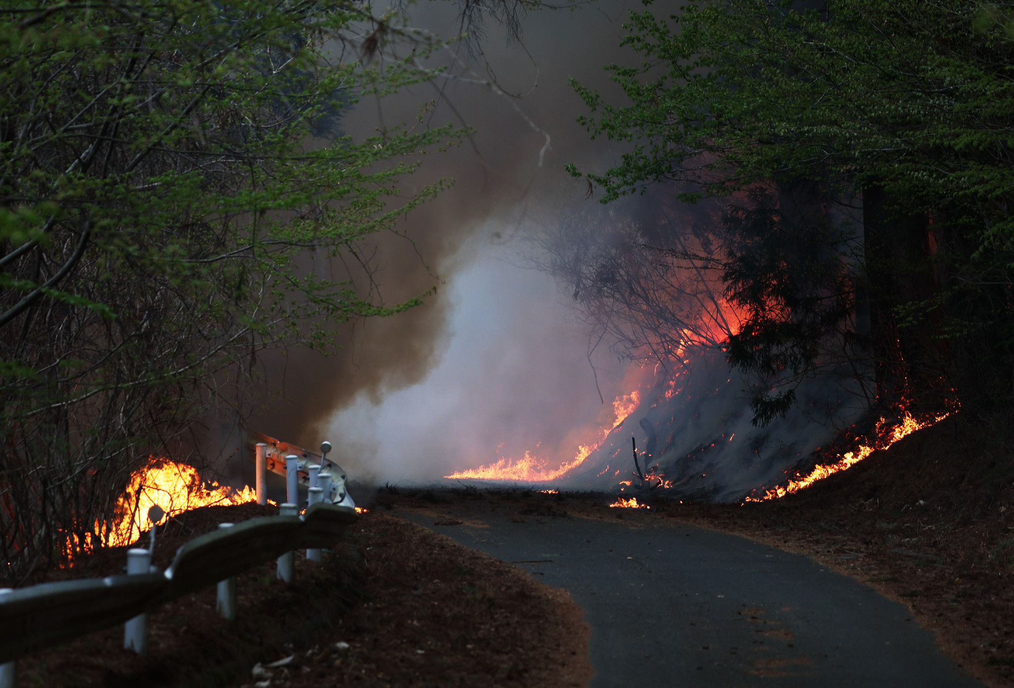 岩手県大槌町で22日午後、山林火災が2カ所で発生した。一夜明けた23日も消火活動が続けられたが、鎮圧のめどは立っていない。県は同日、災害対策本部を設置し、災害救助法を適用した。