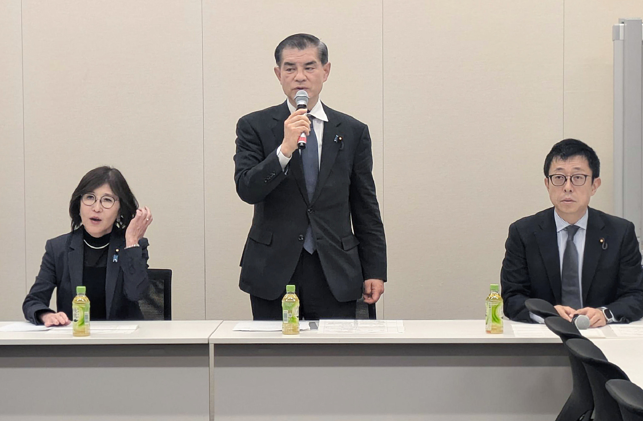 再審制度を見直す刑事訴訟法改正案を巡り、検察官抗告の禁止を求める自民党議員の会合。中央は柴山昌彦元文部科学相=23日午後、国会内