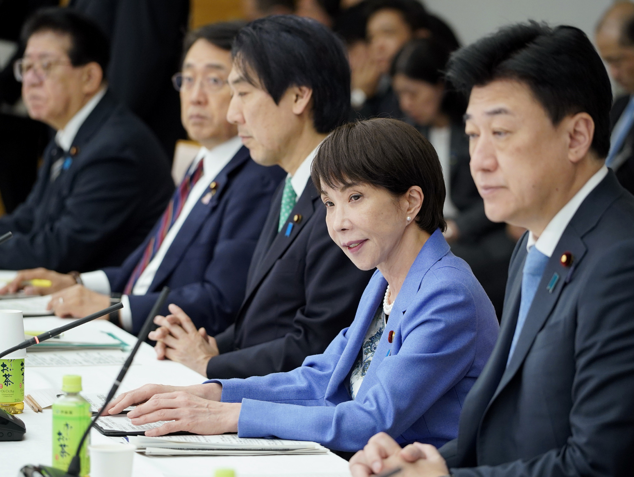 政府は27日の経済財政諮問会議で、道路や橋など社会インフラの老朽化が問題となる中、必要な公共投資を確保するための制度改革について議論した。写真は発言する高市早苗首相(右から2人目)=首相官邸