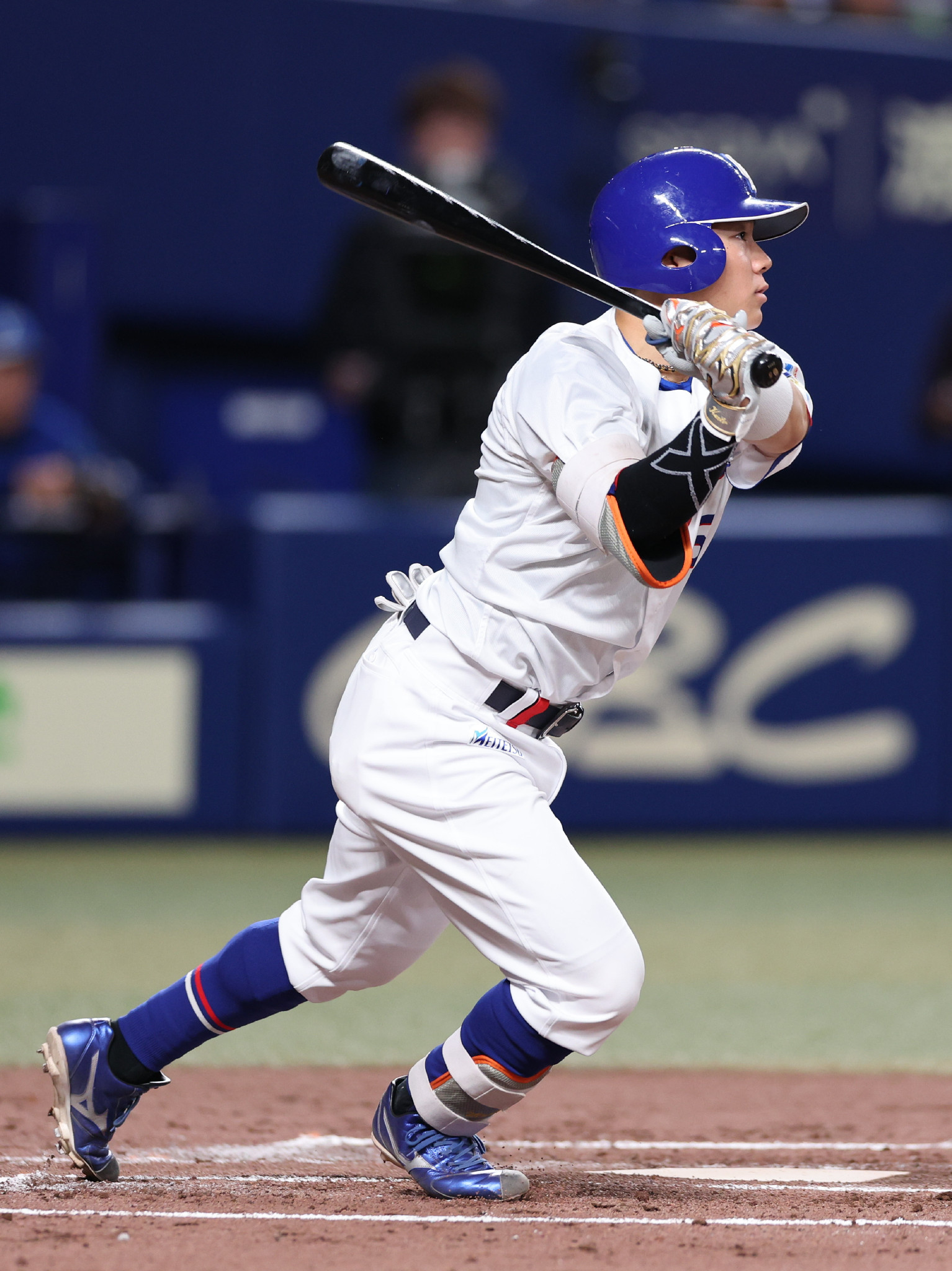 中日が零封勝ちで、今季初の4連勝。2回2死三塁から村松(写真)の適時三塁打で先制。4回には阿部の2ランで加点した。金丸は球に切れがあり、7回を3安打無失点で2勝目=28日、バンテリンドーム