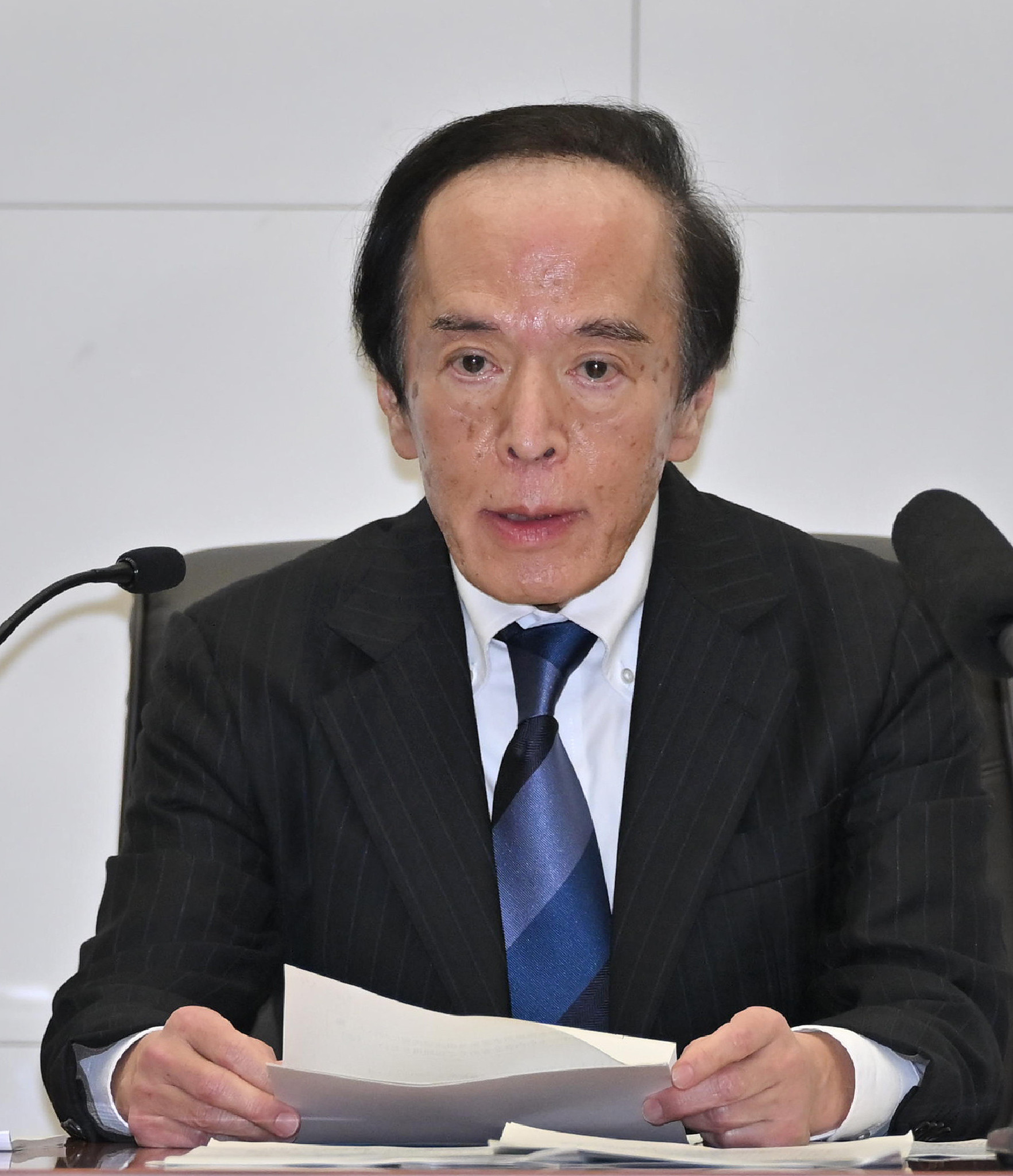 記者会見する植田日銀総裁