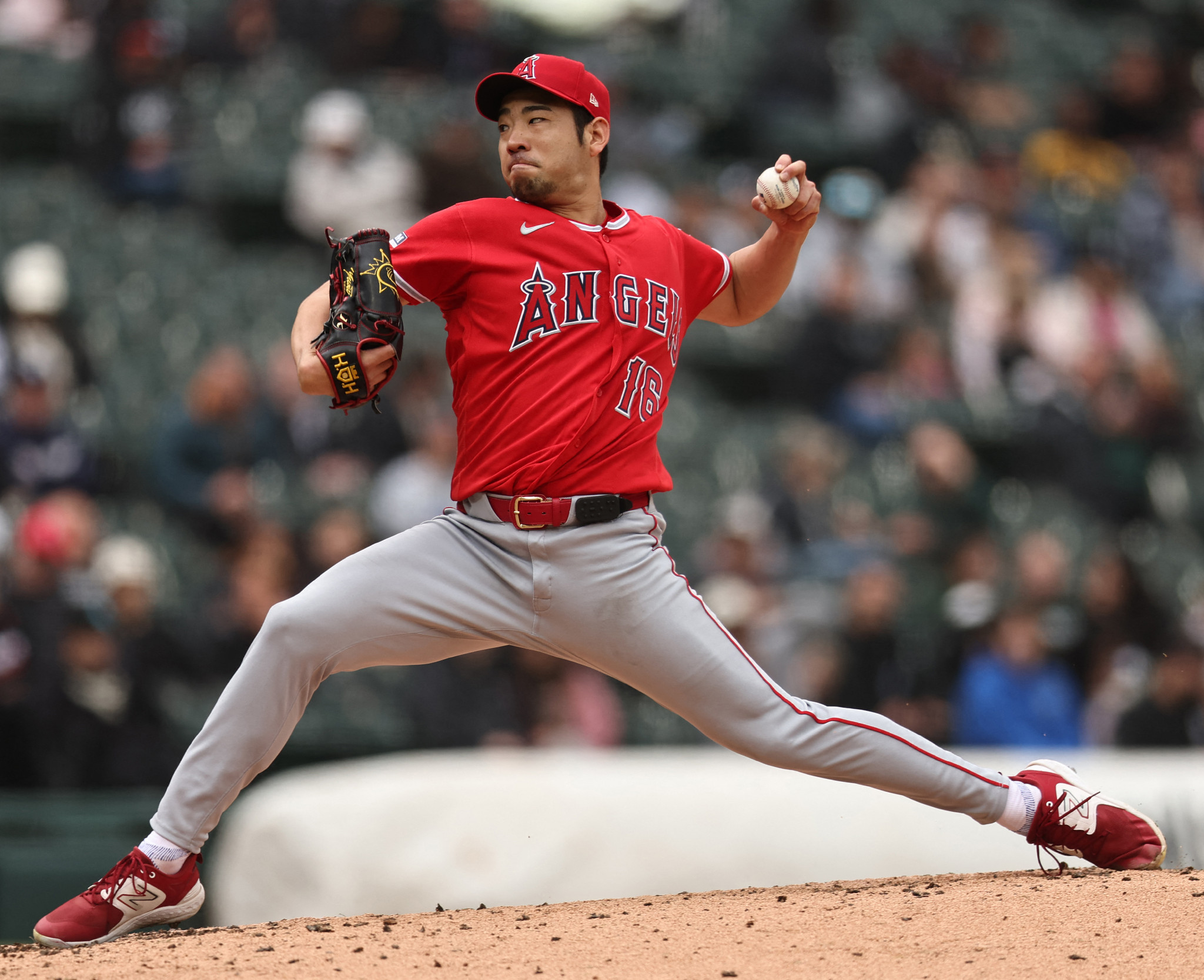 ホワイトソックス戦に先発登板したエンゼルスの菊池=29日、シカゴ