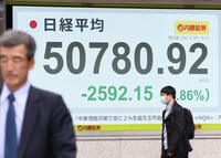 東京株、5万1000円割れ=一時2800円超安、原油高懸念強まる
