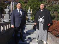 朝乃山、先代親方の墓参り