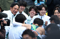 迎える原監督ら 箱根駅伝