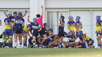 喜ぶ桐蔭学園の選手 高校ラグビー