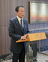 取材に応じる麻生氏