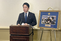 取材に応じる小泉防衛相