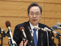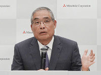 会見する三菱商事社長