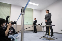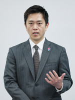 取材に応じる吉村知事