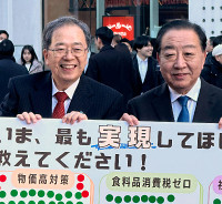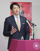 演説する野田共同代表