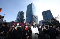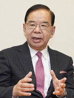 会見に臨むキヤノンの御手洗氏